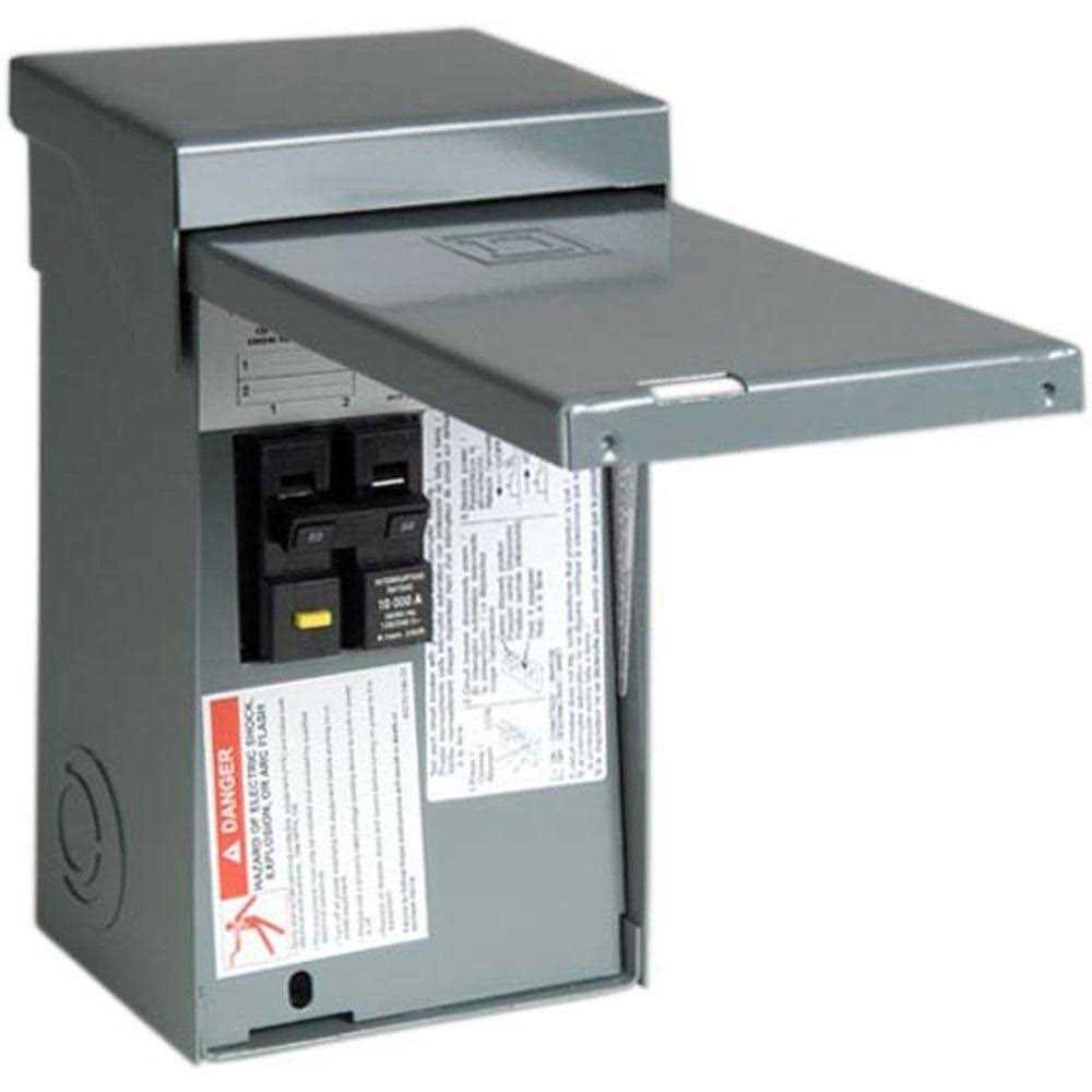 - Includes: HOM250GFI- 50 Amp 2-pole Homeline ground fault circuit interrupter installed in (HOM2-4L50R) – 50 Amp outdoor load center