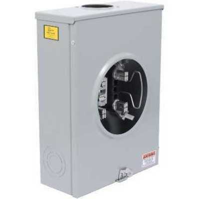 The square d 200 amp residential ringless meter socket with horn bypass surface mounts to provide for a single electric meter. It accommodates multiple wiring configurations for a size hub provision in the top end wall and a 2-1/2 in. Maximum knockout in the bottom end-wall. The meter main uses an aluminum bus, is single phase, 3 wires and features a nema 3R rated enclosure for outdoor use. This unit is ansi certified and ul listed for use as service entrance equipment with a maximum load of 600 vac maximum. This 5-jaw meter socket is compatible with #350 mcm connectors maximum conductor line and load and neutral.