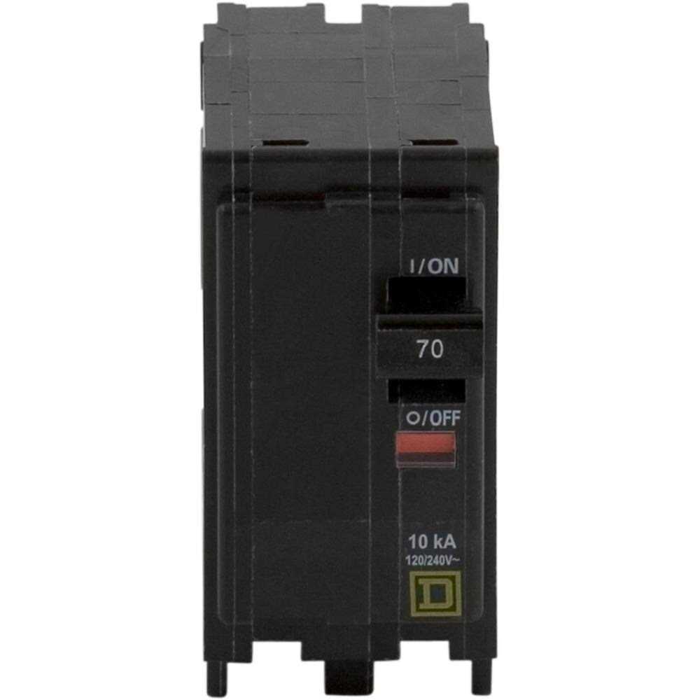 Non-interchangeable. 10,000 AIRVisi-Trip indicator. Plug-in. Fits Q.O. panels. Standard overload and short circuit protection in Q.O.load centers. Tandem breakers offer two circuit protection while only requiring one space in a load center. UL listed. C.S.A. approved. The Square D by Schneider Electric QO 70 Amp Two-Pole Circuit Breaker is intended for overload and short-circuit protection of your electrical system. When a QO Visi-Trip circuit breaker trips, the handle snaps to a midpoint position between “OFF” and “ON” and a highly visible, red indicator easily i. Plug-on design, easy to install.