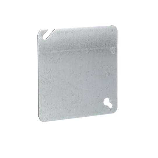 Cover for built-in mounting in the wall/ceiling using 4 in. This box cover offers 4 tapped screw holes for quick installation. Cover is also UL listed. Flat blank box cover For use with 4 in. square box Durable galvanized steel construction Use to cover a 4 in. square housing outlet box Pre-galvanized steel construction UL and CSA safety listings Quickly installs with 4 tapped screw hole Flat design Steel City Square Steel Box Flat Cover offers a slotted screw hole and a tapped screw hole for quick installation. UL and CSA certified product.