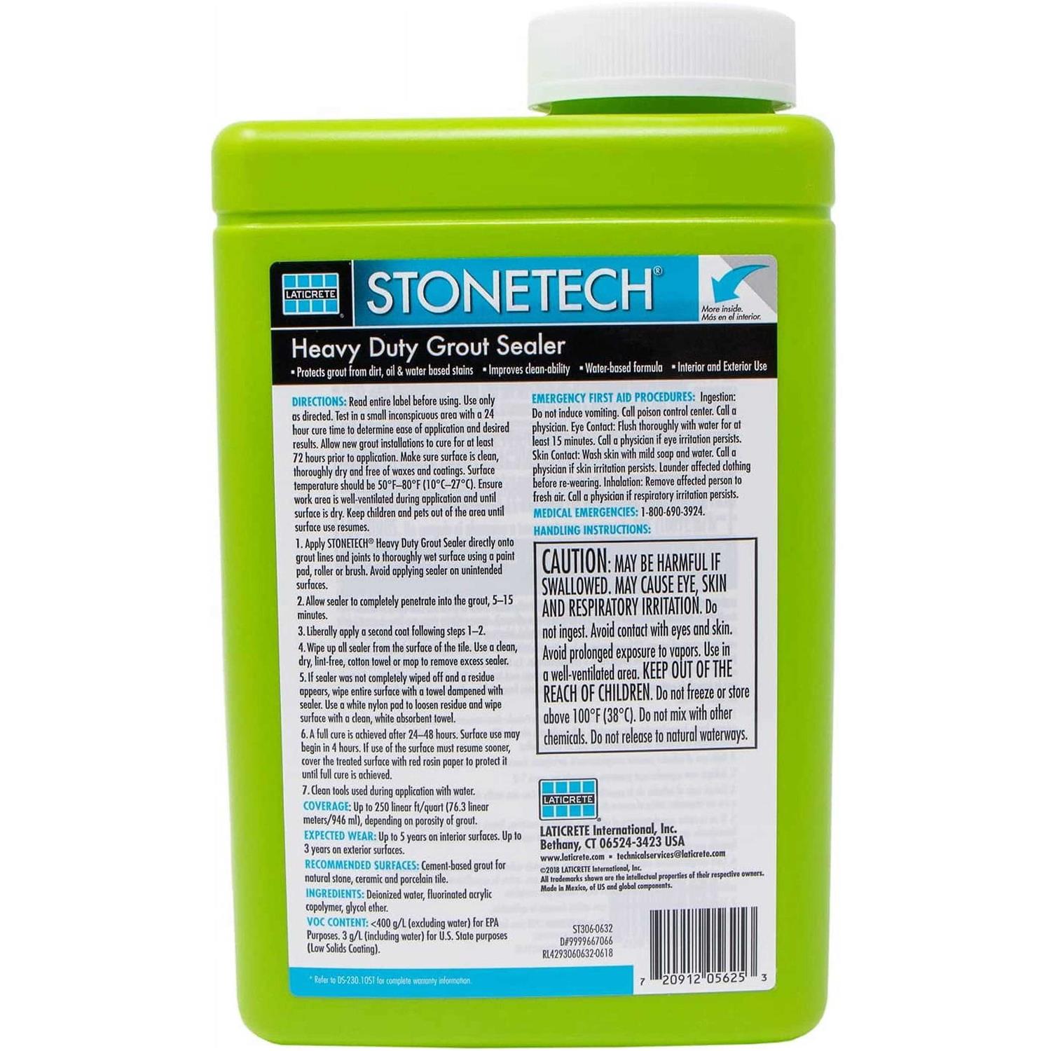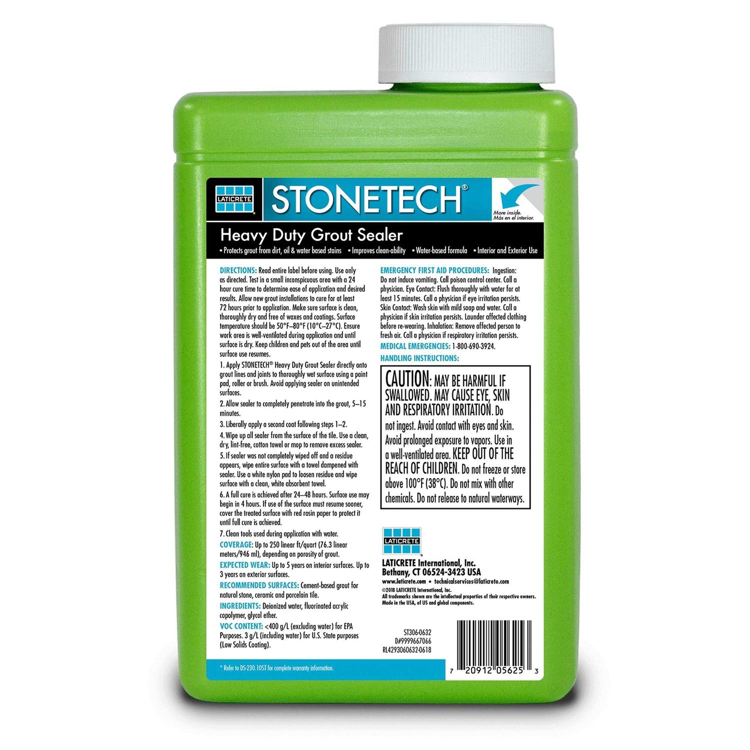 Offers advanced protection against oil and water based stains Keeps grout looking newer longer Improves clean-ability Water-based formula For interior and exterior use STONETECH Heavy Duty Grout Sealer is a water-based, penetrating sealer designed specifically for cement-based grouts and offers advanced protection against oil and water-based stains. A heavy duty sealer that blocks dirt and stains, keeping grout looking newer longer and ultimately improving clean-ability in interior and exterior applications. Better for you and the environment, STONETECH Heavy Duty Grout Sealer is also a safer alternative to solvent based sealers and comes with a 10 product guarantee.