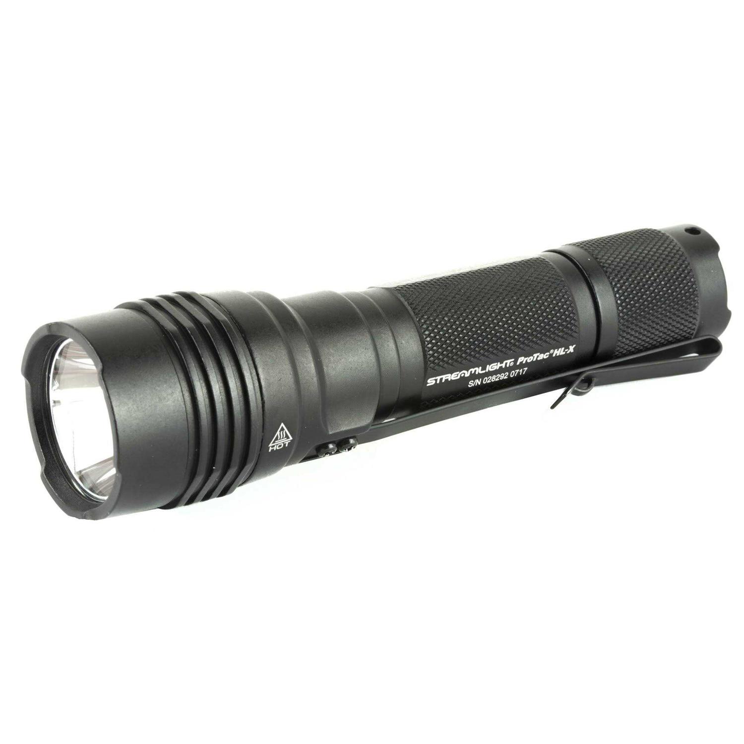 Handheld Flashlights by Streamlight. Details:The Streamlight ProTac HL-X is a 1000-lumen EDC tactical light that comes with two CR123A batteries. The ProTac HL-X uses Multi-Fuel innovation meaning it can use two CR123A (included) and Streamlight’s SL-B26 Li-Ion USB rechargeable battery pack (not included). The Streamlight ProTac HL-X features a tactical tail cap switch for momentary or constant operation, three different user-selectable programs, and a pocket clip for convenience. The body is constructed of 6000 series machined aluminum with Type II Military Spec anodizing, which helps make the ProTac HL-X extremely durable and abrasion resistant. Packaged with a removable pocket clip and holster. Available in Black.
