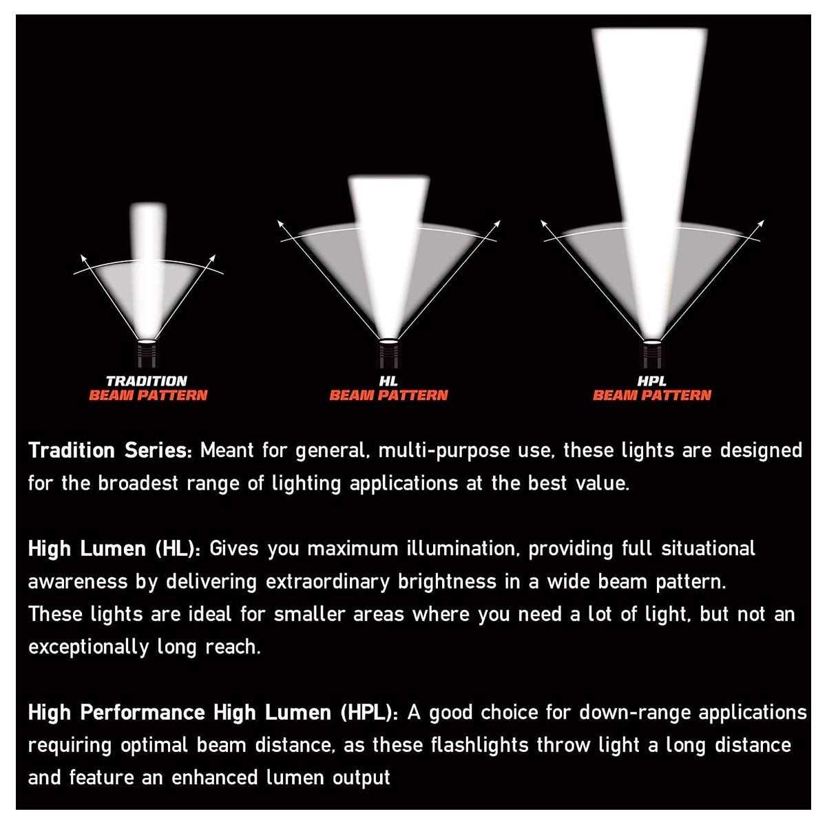- Medium for intense brightness and longer run time: 400 lumens; 12,000 candela; 219m beam; 2.5 hours