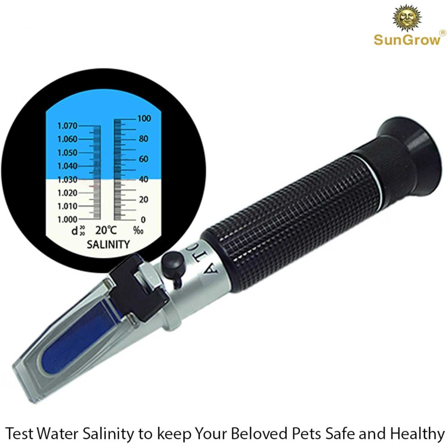 SunGrow Measure Salinity of Water with Aquarium Refractometer Remarkable Accuracy – Includes Calibration Tool – Ensures Overa