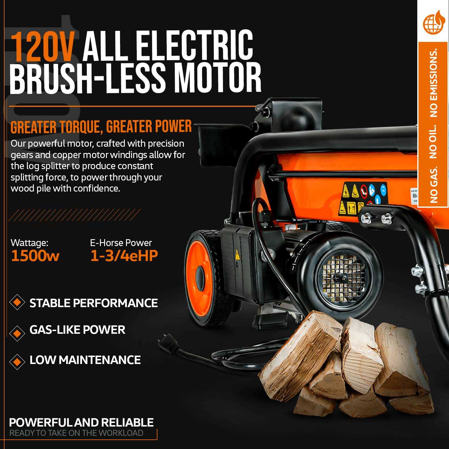 SuperHandy Electric Log Splitter TRI-GUT065