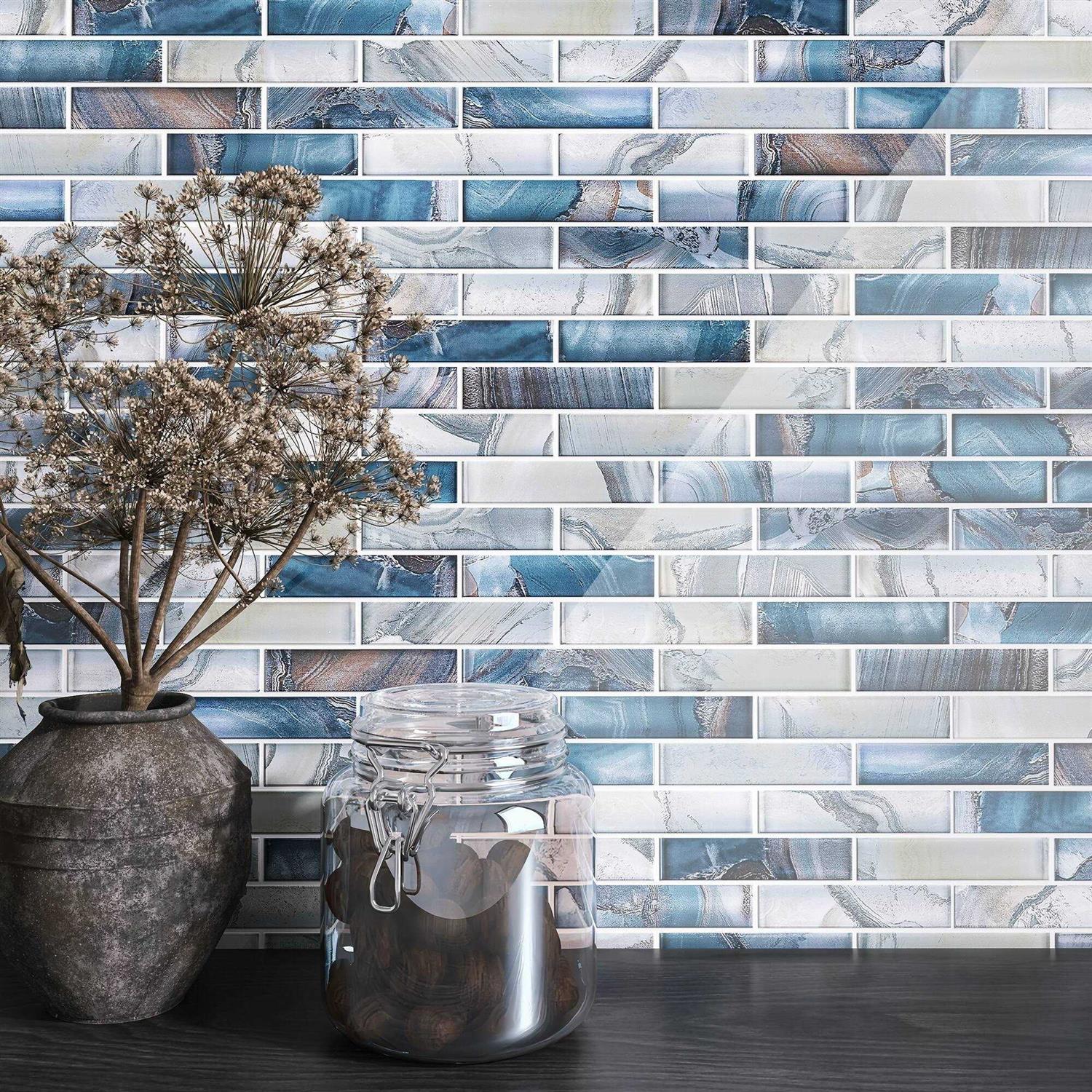 Ocean 1″ x 4″ Glass Brick Joint Mosaic Tile Supreme Tile Color: Aegean Blue