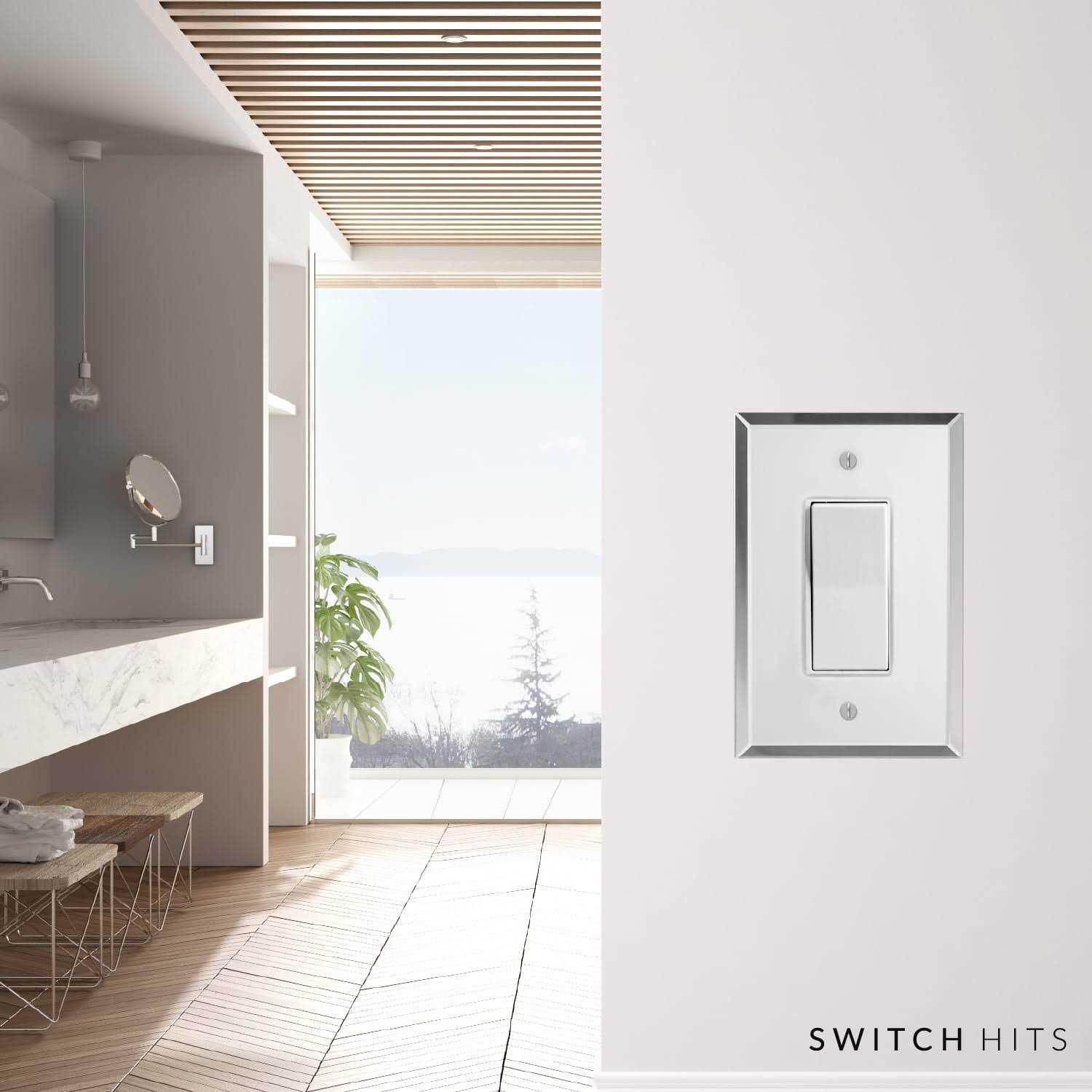 Made with Real Glass: A typical light switch cover is made of acrylic with a polished finish, but this Switch Hits rocker and toggle light switch plate cover has a solid glass mirror construction with a flat back. This construction design means our professional grade wall plates will stand the test of time while making your home or office shine. Sleek and Modern Design: The highly reflective surface provides a classic design for any kitchen, bathroom, or office renovation. The faceplate covers offer a luxurious look and feel that help complete a room. Simple Installation: Every glass mirror plate comes with matching color coordinated screws, providing you with the perfect pair. Screws help your rocker, dimmer, or switches stay in place better than the screwless options. Note: this is real glass, do not overtighten screws or glass may crack. Our light switch plates allow for a lovely decor, no matter how unique your needs. Quality You Can Trust: Switch Hits creates the highest quality blank wall plate covers using the best processes. Trust us to bring a distinct decor during your next home improvement renovation.