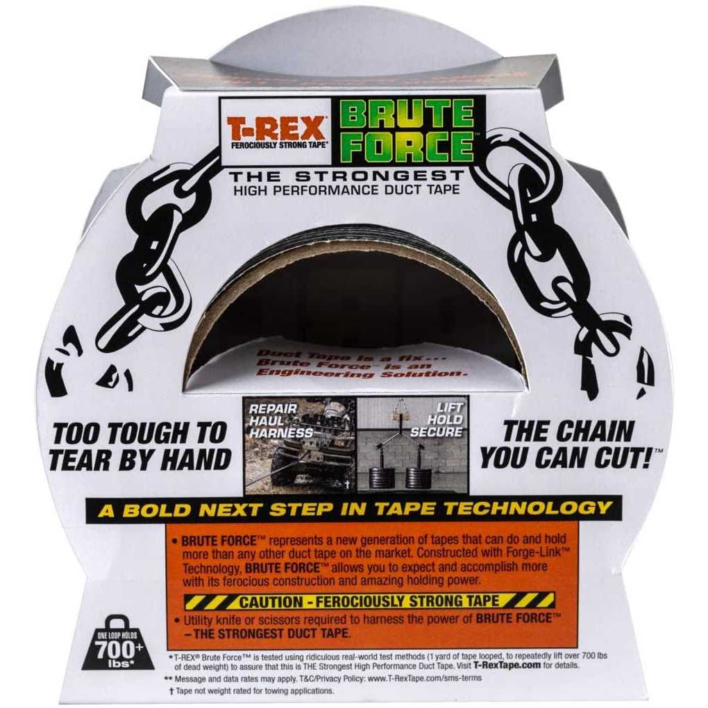 T-Rex Brute Force high performance duct tape is a bold next step in tape technology. Built with Forge-Link Technology, an extreme tensile cloth, one loop of T-Rex Brute Force tape holds 700+ pounds of weight, making it the strongest duct tape on the market, period. Too tough to tear by hand, this premium tape features an aggressive double-thick adhesive with a durable waterproof backing, so you can secure, fasten or hold all sorts of materials for any project, on any jobsite. Hold more. Do More.