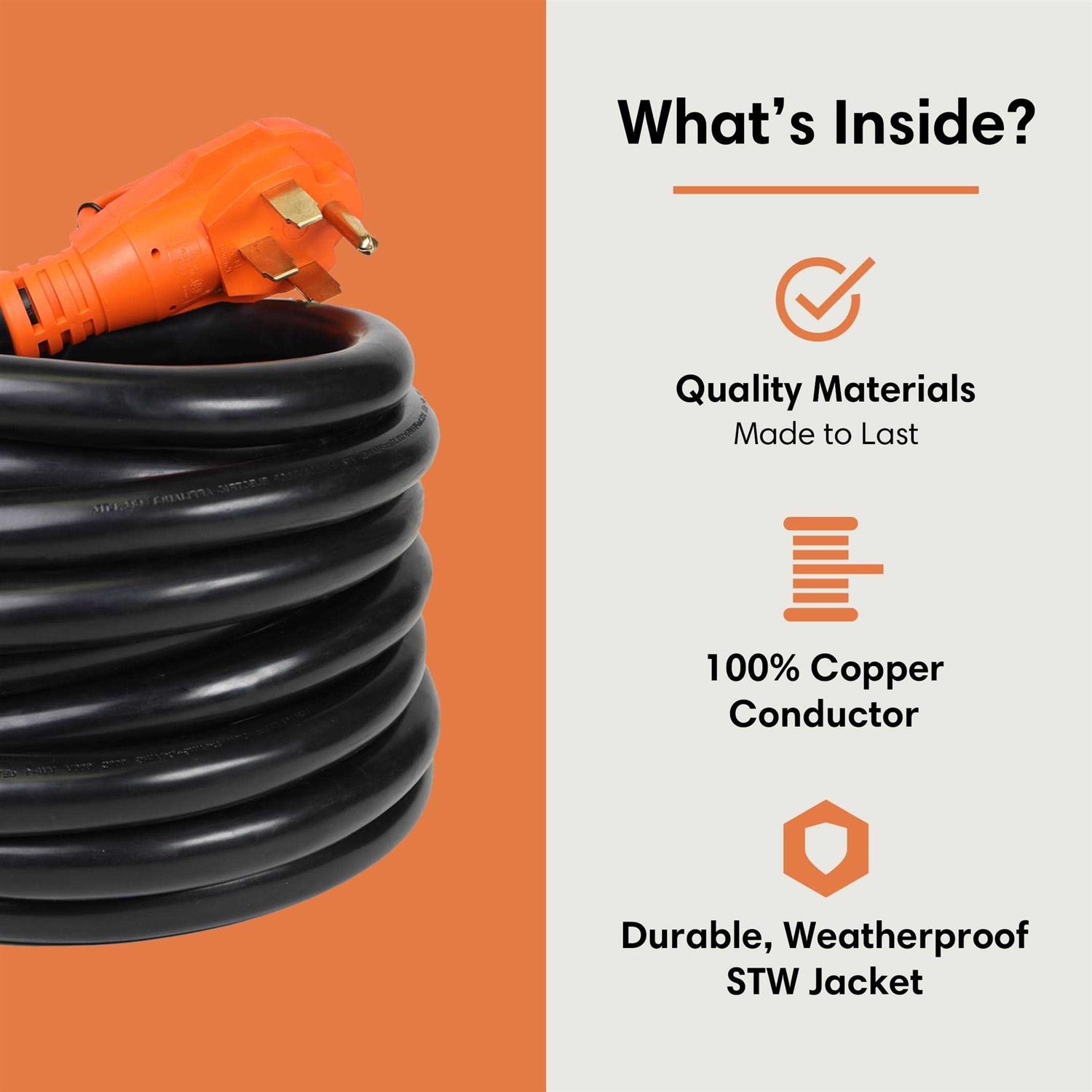 TechnoRV 50-Amp Indoor/Outdoor RV Extension Cord – 25 ft – Locking