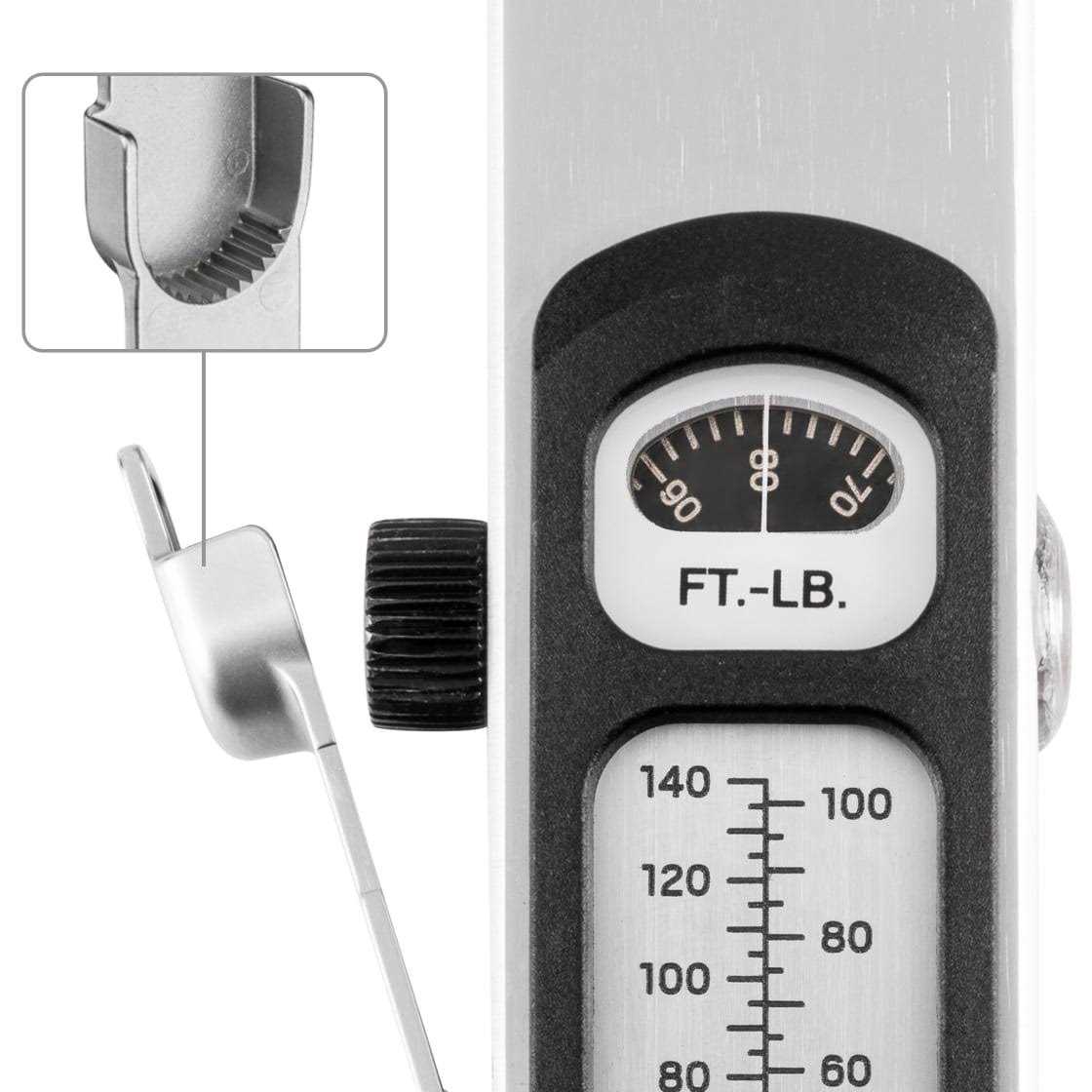 - A scale on the body of the wrench allows for quick conversion from foot-pounds to newton-meters