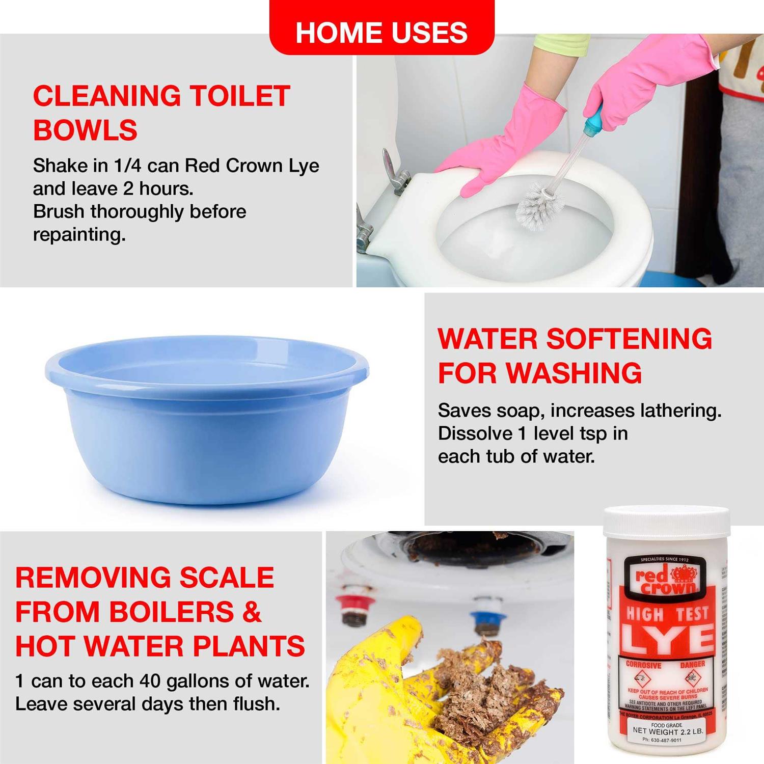 The Boyer Lye for Soap Making, Sodium Hydroxide Pure High Test Lye Food Grade, Caustic Soda, Drain Cleaner and Clog Remover