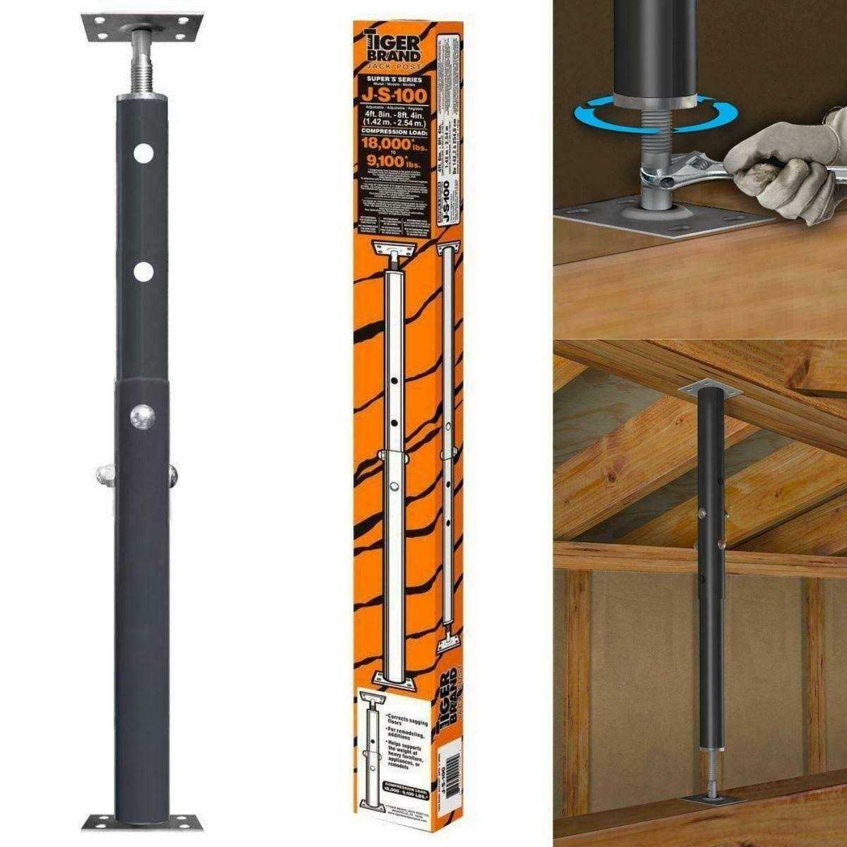 Perfect for temporary or additional support under porches, stairs, crawl spaces, decks and heavy load areas. For added safety and strength, fully adjustable jack posts come with double carriage nut and bolt. All moving parts fit snugly to prevent lateral displacement, top and bottom plates are deeply embossed to mitigate movement and prevent dishing.