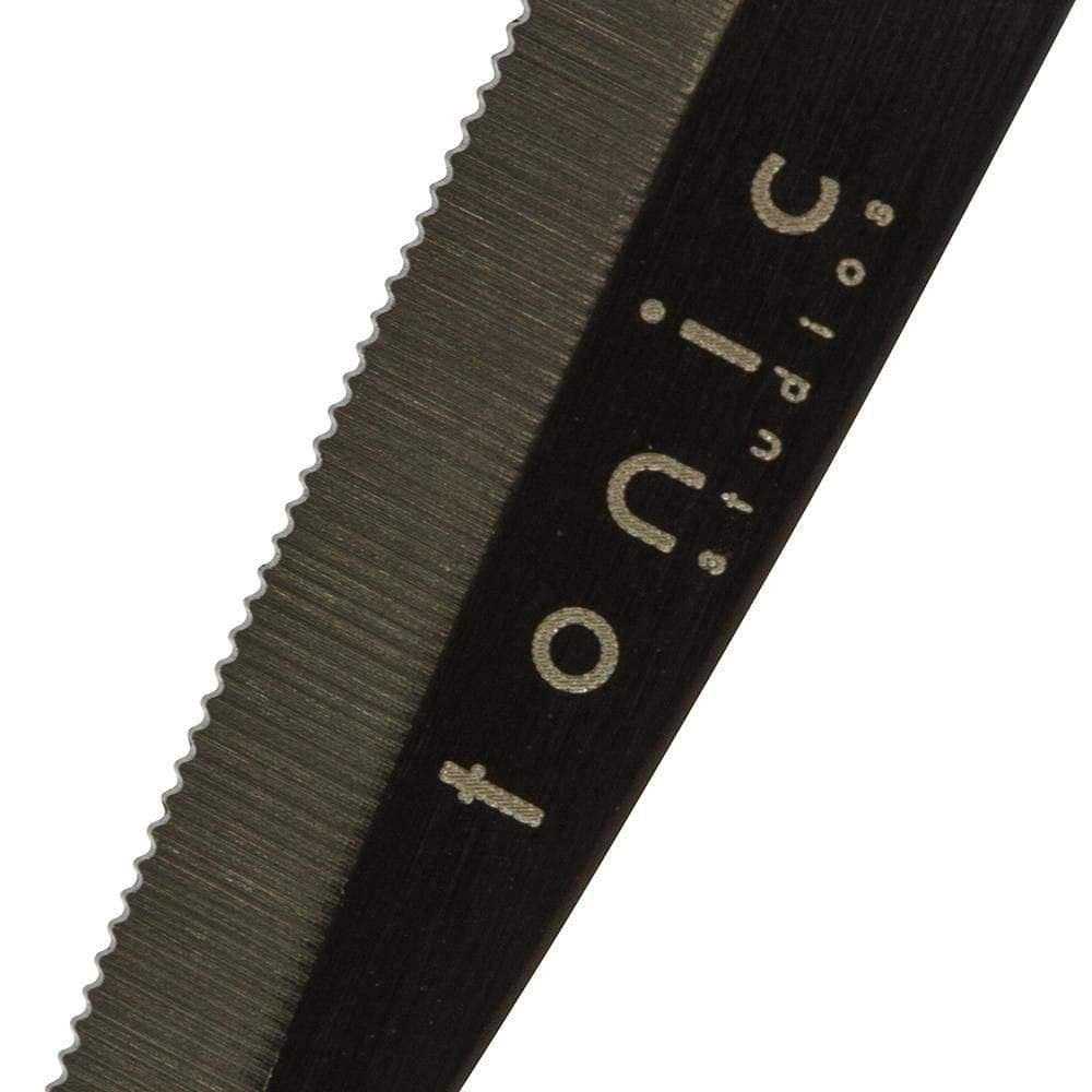 Tonic Studios Kushgrip Non-Stick Scissors have a versatile design that’s suitable for a wide variety of applications. They feature a solid steel build for long-lasting durability, plus non-stick blades to prevent build-up of oils or adhesives. These 7.5 inch craft scissors have 3 inch long blades and soft Kushgrip handles that offer a cushioned feel for comfortable use. With one serrated blade and one straight blade, they can efficiently cut through many different kinds of materials. You can use Tonic Studios Kushgrip Non-Stick Scissors in the garden, at school or in the workshop on your creative projects.