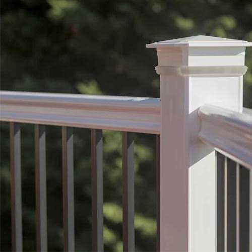 Includes Top and Bottom Rail, 4×4 Post Sleeve, 4-in Post Cap, 4-in Post Skirt, Hardware, Footblocks, 13 Balusters for 6-ft sets, and 18 Balusters for 8-ft sets. Colors Available: White Only. Easy-to-install rail set includes everything you need in one box. Resistant to mold and moisture damage — won’t warp, rot, or splinter. RadianceRail Express Smart Set is available in White, with White Composite PVC balusters, and White post sleeve, cap and skirt; for additional color options see RadianceRail Express options. Available in 6-ft or 8-ft railing sections for level railing applications and 6-ft or 8-ft sections for stair applications. 44 degree and 22.5 degree cuts for a bay design, don’t require any additional hardware or complicated cuts; a 45 degree cut will fit on the face of a 4-in post sleeve. All RadianceRail Express railing Sections are tested and documented to meet International Building Code and International Residential Code.