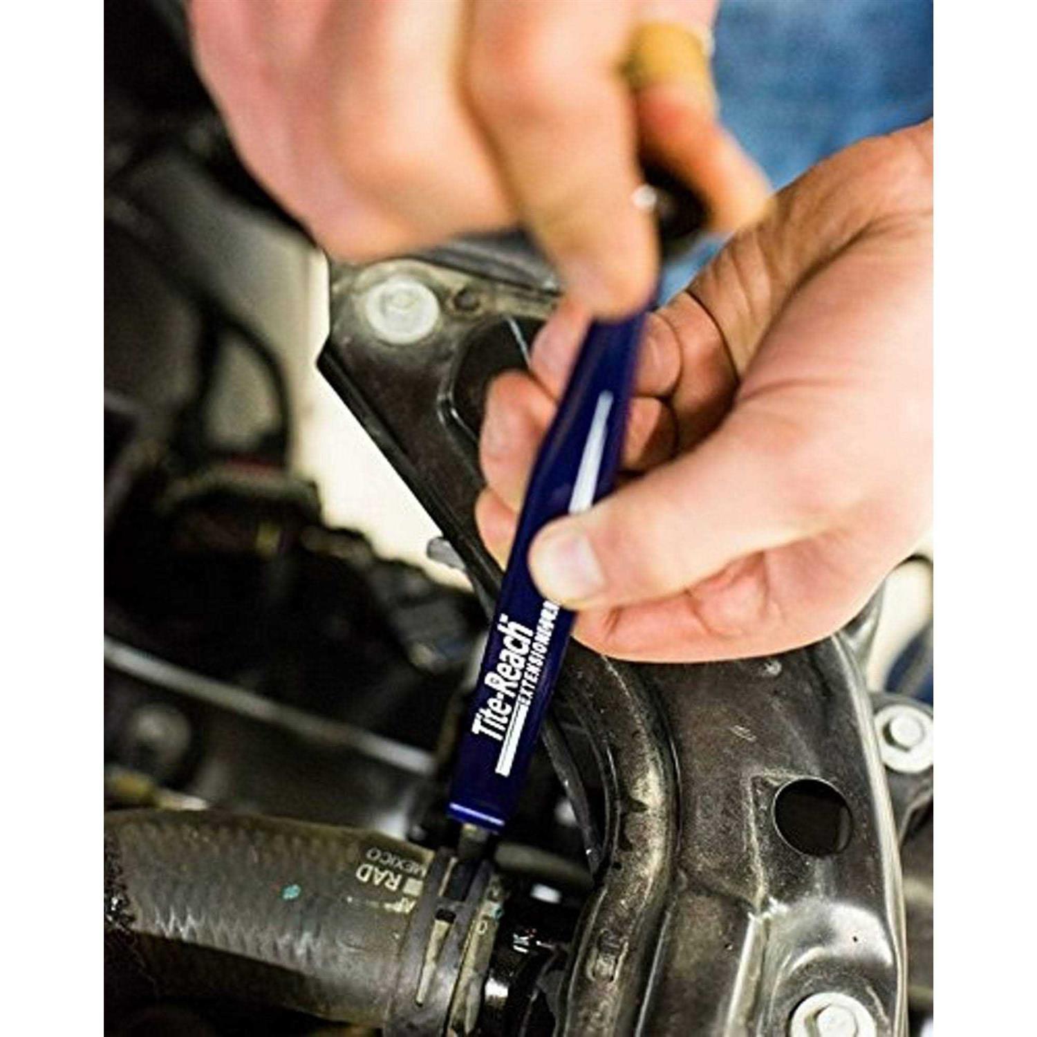The TiteReach Extension Clamp is a great tool for every toolbox. Weve all been in those frustrating spots where your hand cant quite reach or having to wait for a hot muffler or radiator to cool before you can reinstall a bolt. The Extension Clamp will also save you time by not having to remove other parts on your equipment to get into a tight spot. Our clamps jaws open to 1 1/8 in or 1.125 in wide giving you the ability to hold a 3/4 in nut or bolt. Its vicelike design also ensures you wont drop the part its holding until you loosen the tension nut. This means unlike a pliers you do not need to maintain tension to keep what youre holding in place this is very valuable when youre in a difficult spot where if you drop what is clamped it will be gone. Our extension clamp has been used in everything from auto body to airline maintenance and is a great option for anyones toolbox.