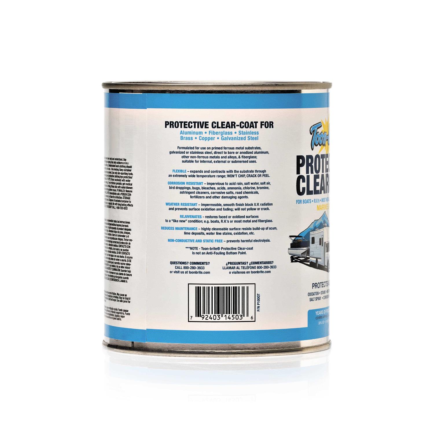 This Toon-Brite Protective Clear Coat for Boats rejuvenates fading or oxidizing metal surfaces and provides a long-lasting barrier against the elements. It is a perfect clear coat option for aluminum, fiberglass, brass, copper, stainless, and other metal surfaces. This protective clear coat is designed from a corrosion-resistant non-conductive formula and will make future boat cleaning considerably easier. It will provide years of protection against oxidation, UV rays, weathering, stains, salt spray, and electrolysis. Easily apply a clear-coat with either a 3-4 inch foam brush or spray it using an HVLP type sprayer. Be sure to clean and dry the vessel surface prior to application.