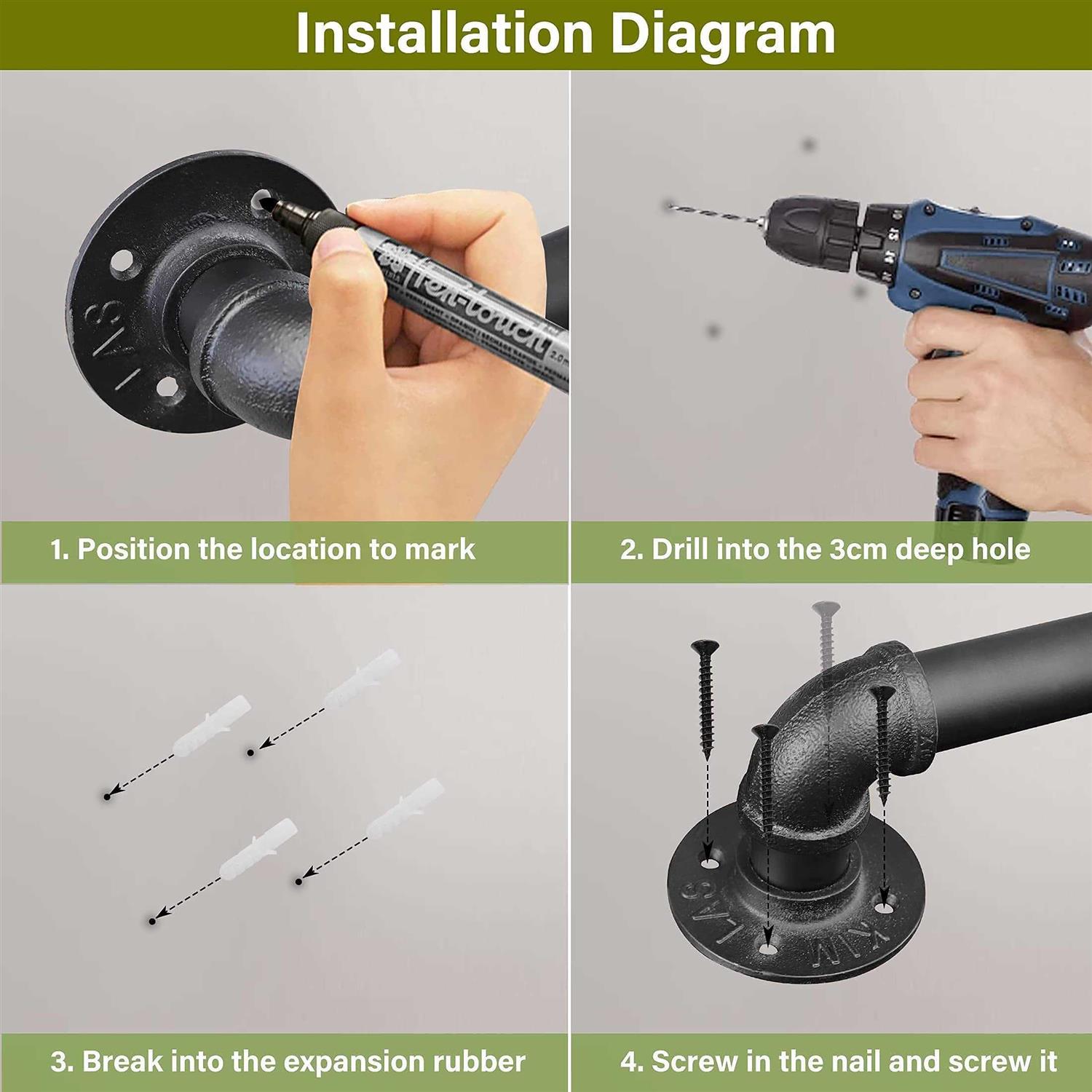 - 【Main Parameter】: Length: 6.6ft; Distance to the wall: about 2.75 inches. (Including both ends brackets and sufficient expansion screws.).