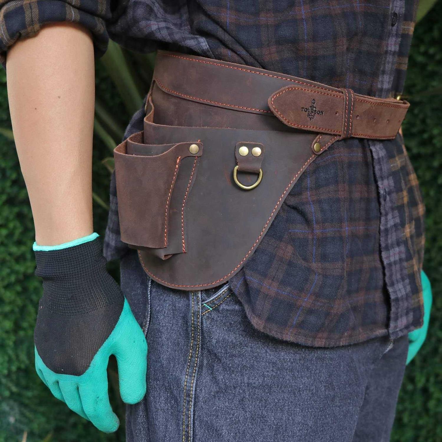 Tourbn Tourbon Genuine Leather Florist Tool Belt Bag Gardener Farmer Tools Holster Waist Pouch Electrician Carpenter Organizer Kit 3 Pockets