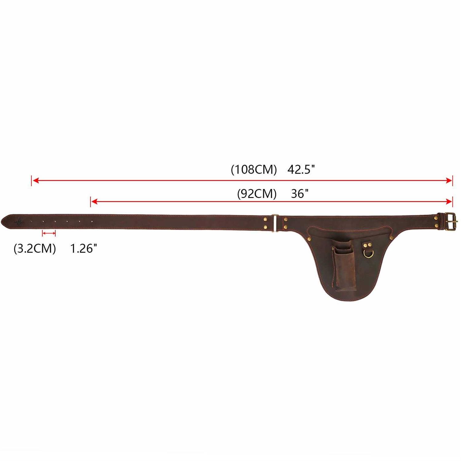 - Has 3 pockets with different sizes which will hold different tools well, adjustable belt between 36″-42″.