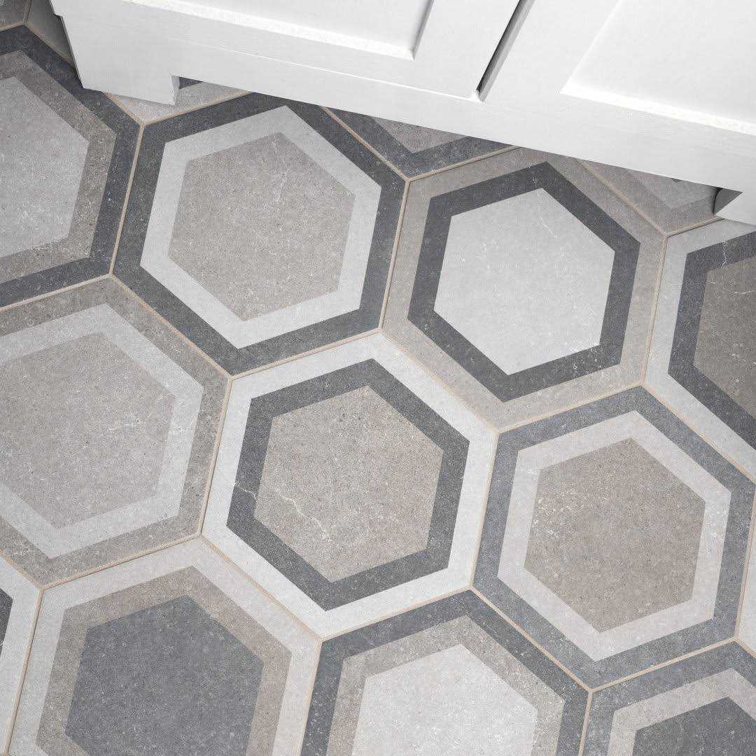 Effortlessly add some pattern to your space with these tiles. Made from porcelain, they strike a hexagonal silhouette to create a honeycomb pattern in your space. The grey and white hues provide a neutral backdrop that’ll easily fit into your space and color scheme. Rated for heavy foot traffic and waterproof, these tiles are ideal as a kitchen or bathroom floor. Or even as an eye-catching backsplash or shower. These tiles measure 8.63” W x 9.88” L and are sold in cartons of 25.