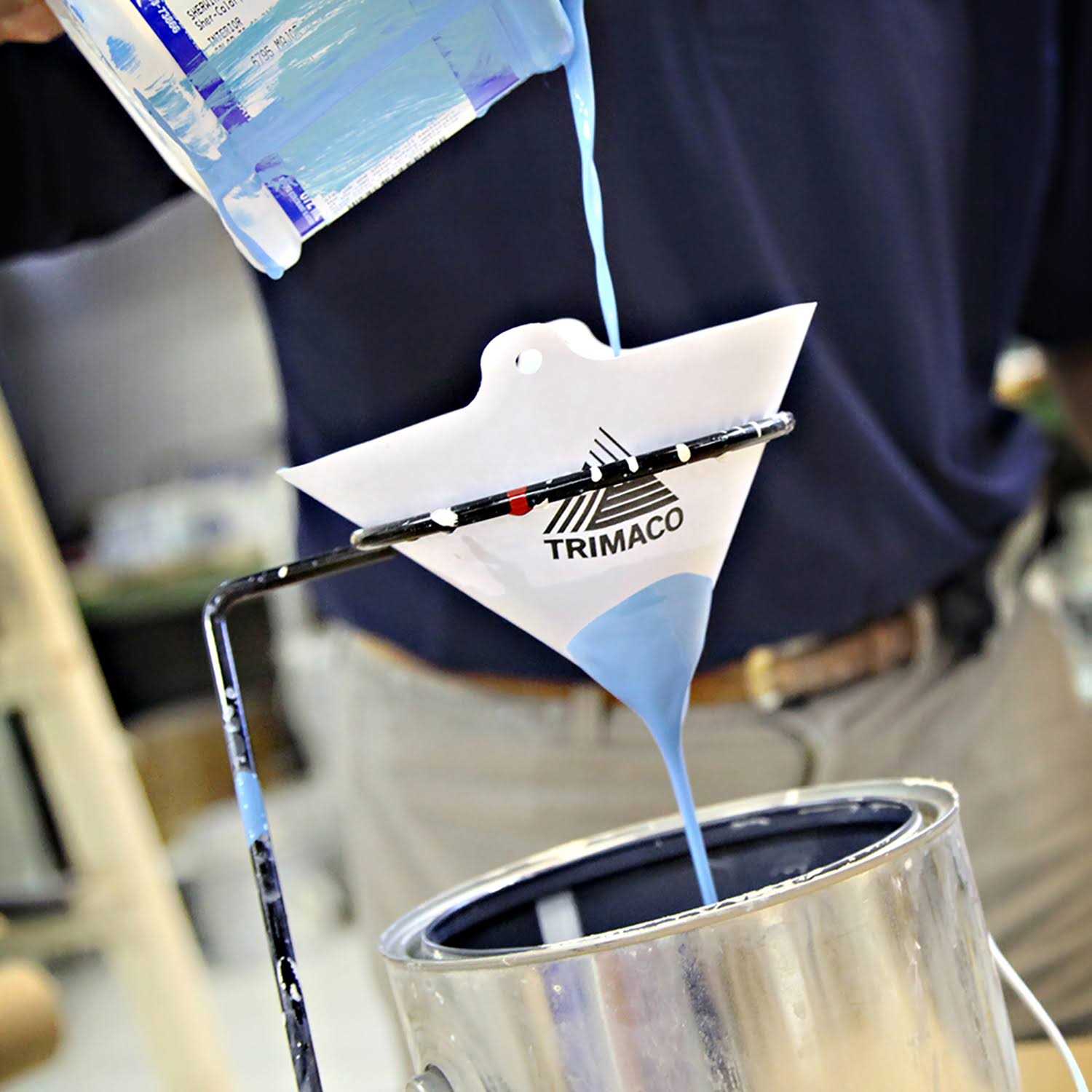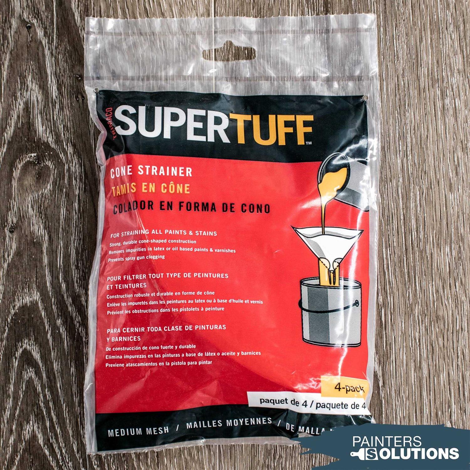 Ideal for straining smaller amounts of paint. Removes solids from oil base and latex paints varnishes resins and others. Strong durable construction. Eliminates paint problems. Medium mesh. 4 per card. Length: 8. Width: 8. Height: 7.5.