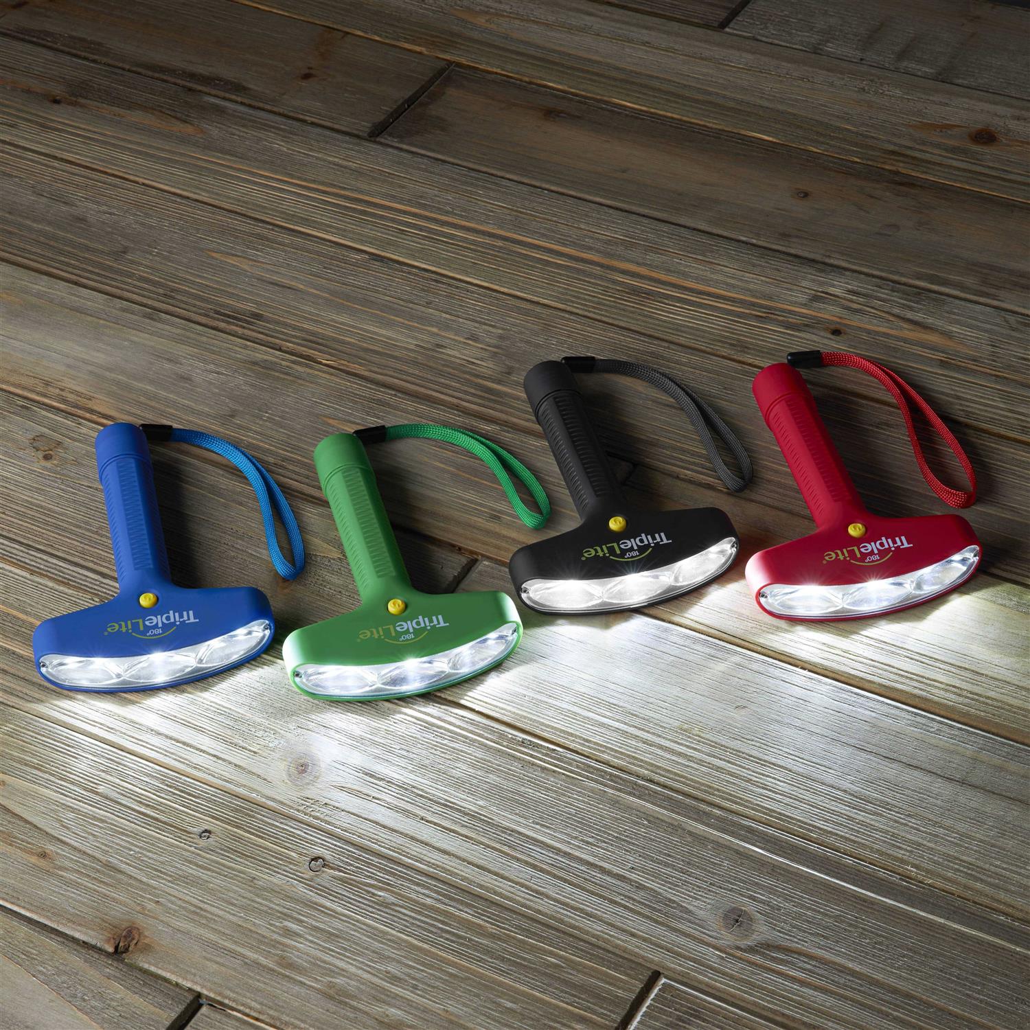 Lighten things up with the 180 wide beam PATENTED TripleLite 180 TL300 flashlight that illuminates your natural field of vision by tripling your visibility. A curved design and three ultra-bright LED bulbs create a 180 arc of light, providing improved visibility in all directions–not just straight ahead. An added lanyard makes it a cinch to hold, and the water resistant case keeps it shinning bright even in a deluge. TripleLite 180 TL300 with built in lanyard is perfect for walking the dog, hiking, boating, auto emergencies, camping and walking at night. It is perfect for stashing in your car or emergency kit, and it even stands on end to illuminate the entire room during power outages–no candles needed!