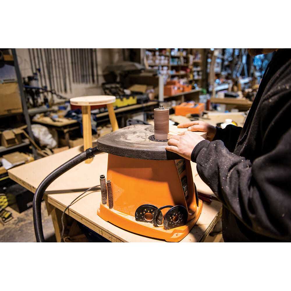 Triton Tools Benchtop Oscillating Spindle Sander. This excellent value machine from Triton Tools is an effective way of sanding inside curves and holes of various radii thanks to the inclusion of six different sizes of spindles. It has a large cast iron table that is precision flat allowing you to take full advantage of the squareness of the spindle to the tabletop. The up-and-down oscillation of the bobbin means that the usage of the sanding sleeve is averaged out over the 16mm stroke length. This sander is most effective when used with a dust extraction system, which prevents most of the sawdust from landing on the table, and improves air quality for the user. The kit comes with five rubber sanding drums, as well as the suitable table inserts and washers. This allows you to use six different sizes of sanding sleeve (13 -bare spindle, 19, 26, 38, 51 and 76mm). Also included are six 80 Grit sanding sleeves (one of each size) to get you started, with the option of adding another six to have spares. Features: Supplied with six sizes of sanding sleeve and appropriate accessories. Spindle sander spins and oscillates for optimal sanding. Suitable for sanding inner curves that normal sanders can’t access. Can also be used to sand the inside of holes, normally a hand task. Option to add another one of each sanding sleeve.