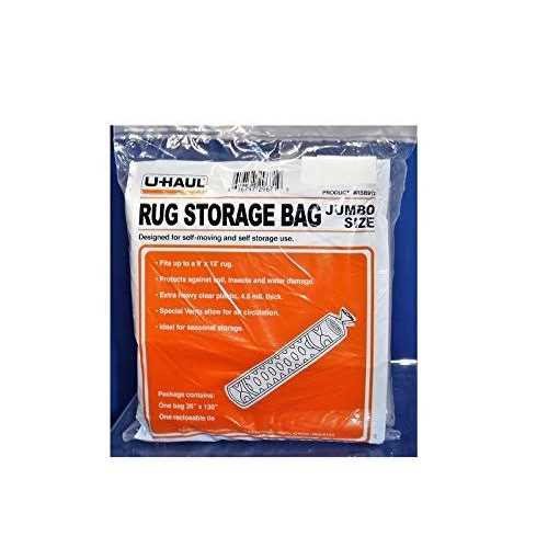 The U-Haul Large Rug Storage Bag is ideal for storing and protecting a rug up to 6 by 9. This bags heavy, clear plastic design protects the rug from soil, insects, dust, dirt, and water damage during the moving and storing process. Built-in vents allow for air circulation.
