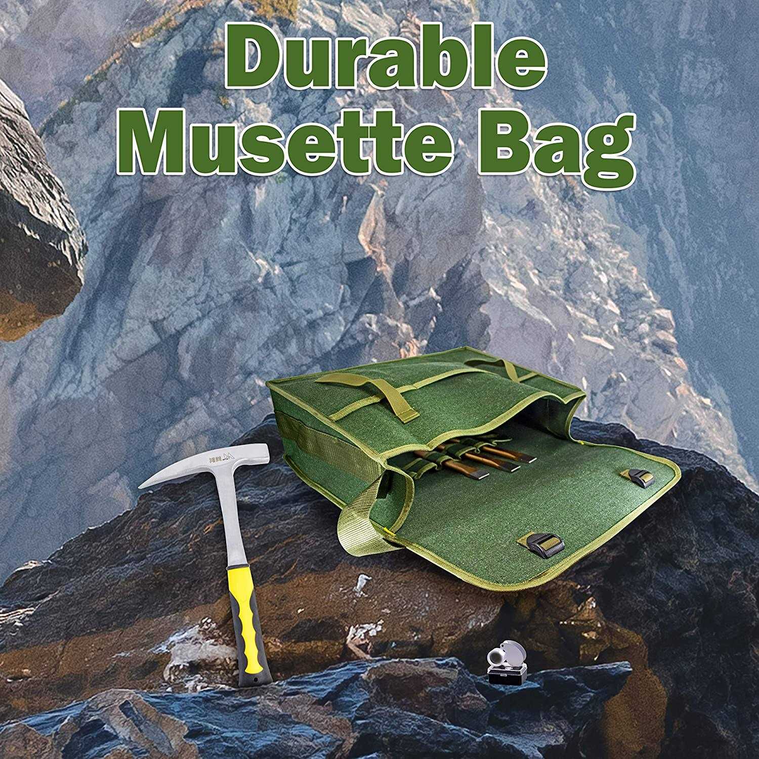Rock Hammer Mining Kit, Rockhounding Geology Tools Musette Bag Chisels Rock Pick Hammer
