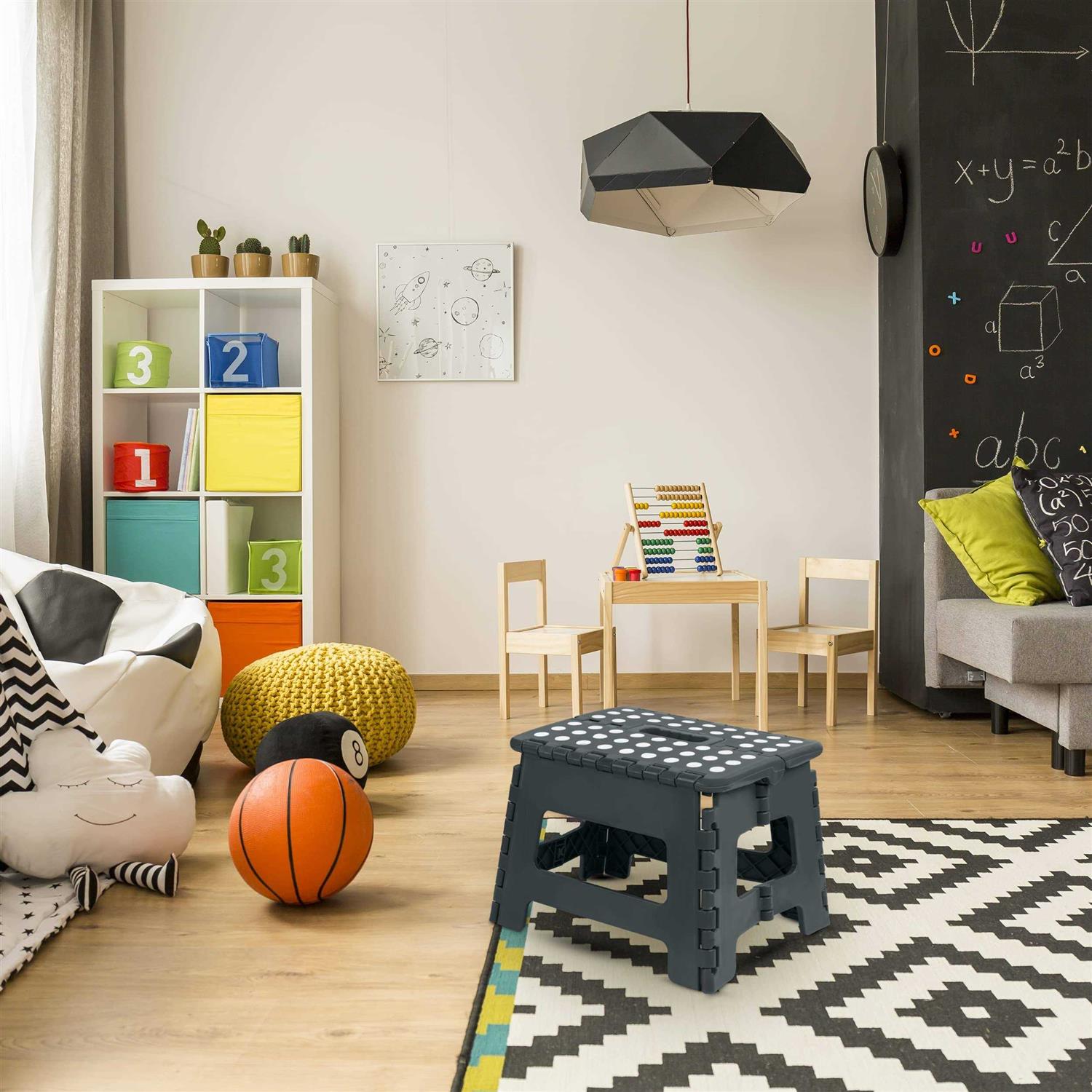 - This highly durable foldable stool is made for kids and can hold up to 300 pounds. SPACE EFFICIENT
