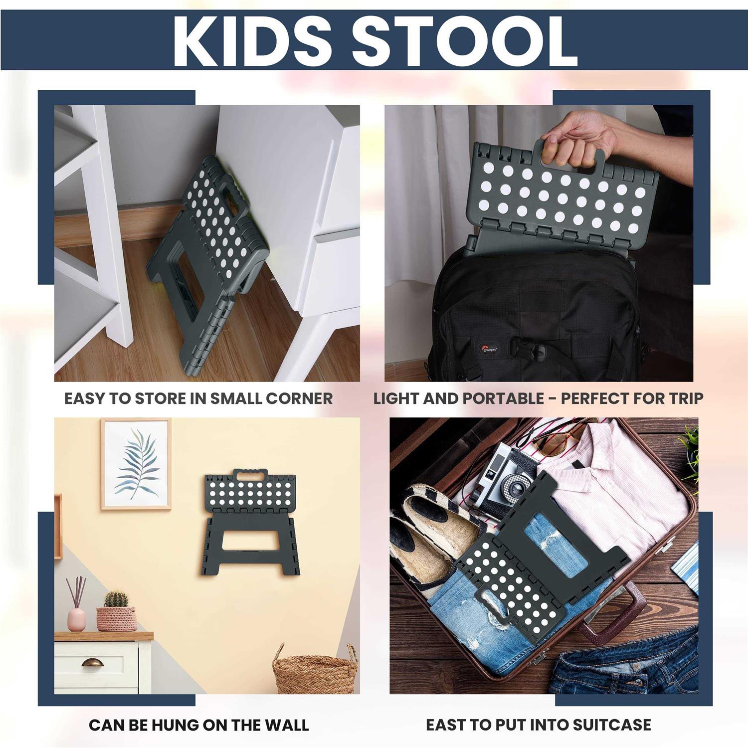 This highly durable foldable stool is made for kids and can hold up to 300 pounds. The dimensions of the foldable stool is 29 x 22 x 22cm The stool is really easy to carry around using the handle which is also highly durable This stool gives your children and you the extra height that you need, whenever you need it This highly durable foldable stool is made for kids only and can hold up to 300 pounds The stool is really easy to carry around using the handle which is also highly durable This stool gives your children and you the extra height that you need, whenever you need it Color : Blue Size : 11 (L) x 9 (W) x 9 (H) This highly durable foldable stool is made for kids and can hold up to 300 pounds. SPACE EFFICIENT The stool is really easy to carry around using the handle which is also highly durable RIGHT ELEVATION This stool gives your child the extra height whenever required ANTI-SKID FOOT PAD”