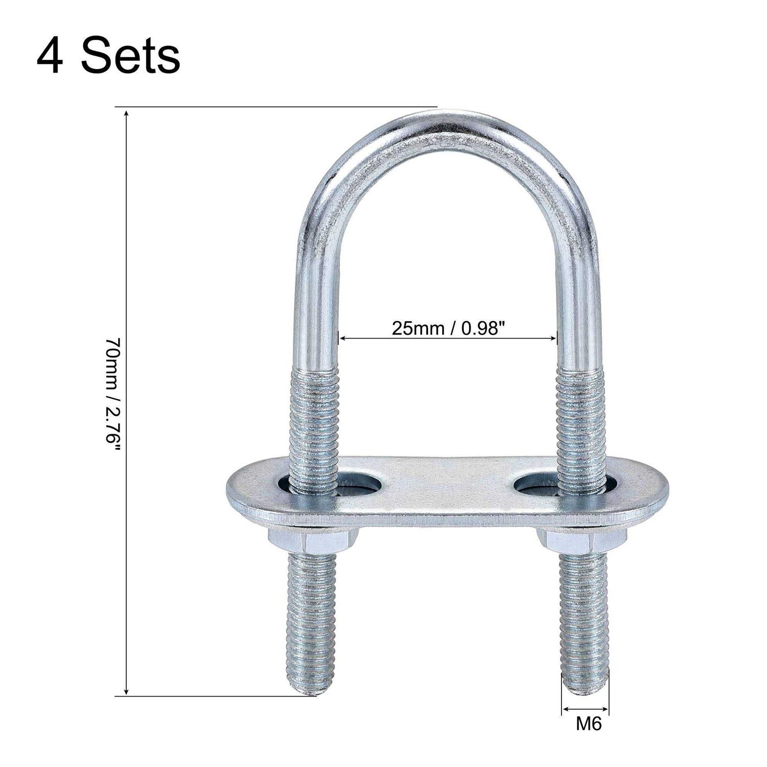Uxcell Round U-Bolt 25mm Inner Width 70mm Length Steel M6 with Nut Plate Washer 4 Sets | Harfington, M6x25mmx70mm / 4Set