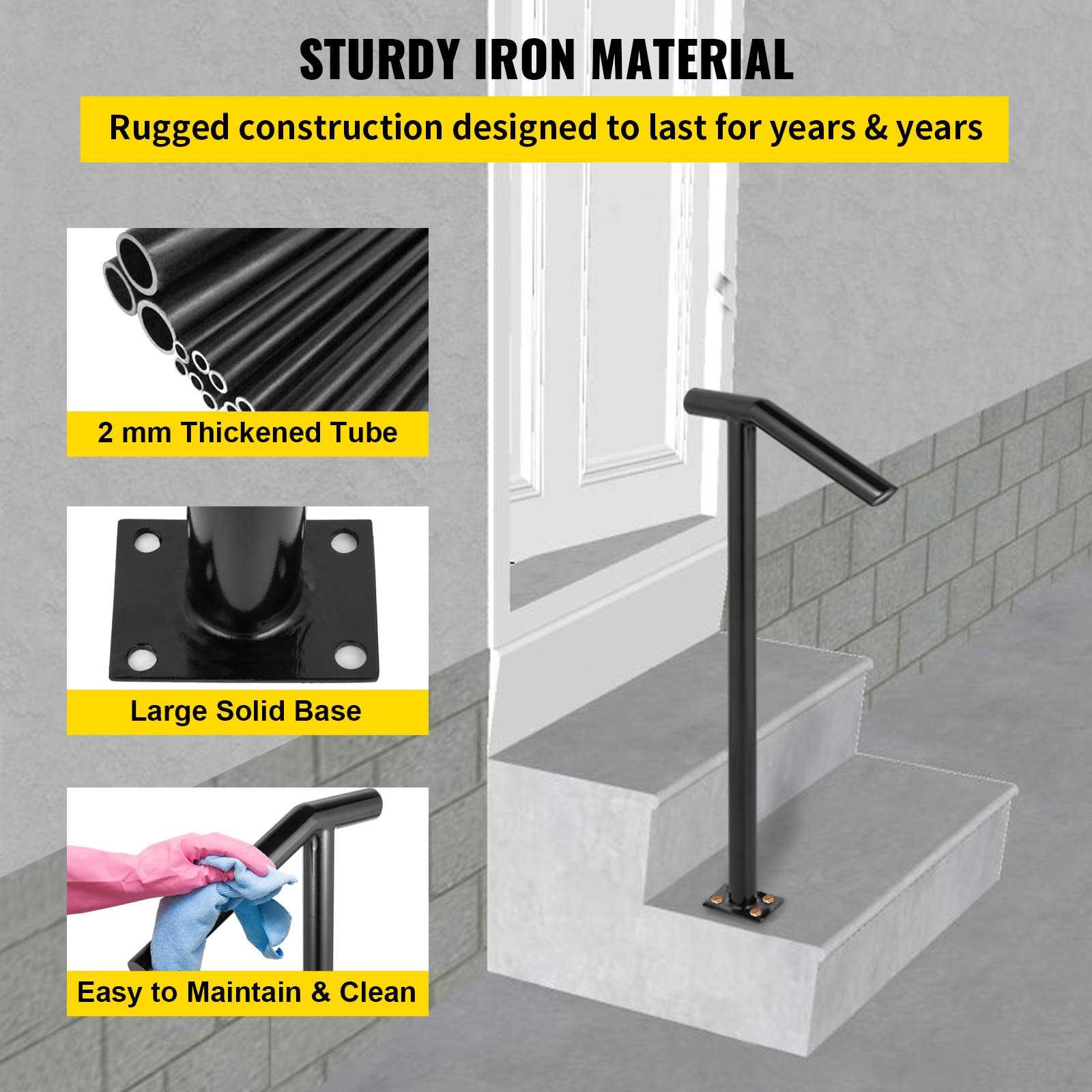 VEVOR 1-2 Steps Single Post Handrail 17.7-in x 37.8-in Wrought Iron Finished Wrought Iron Handrail in Black | LTFS2BXYGLZHS0001V0