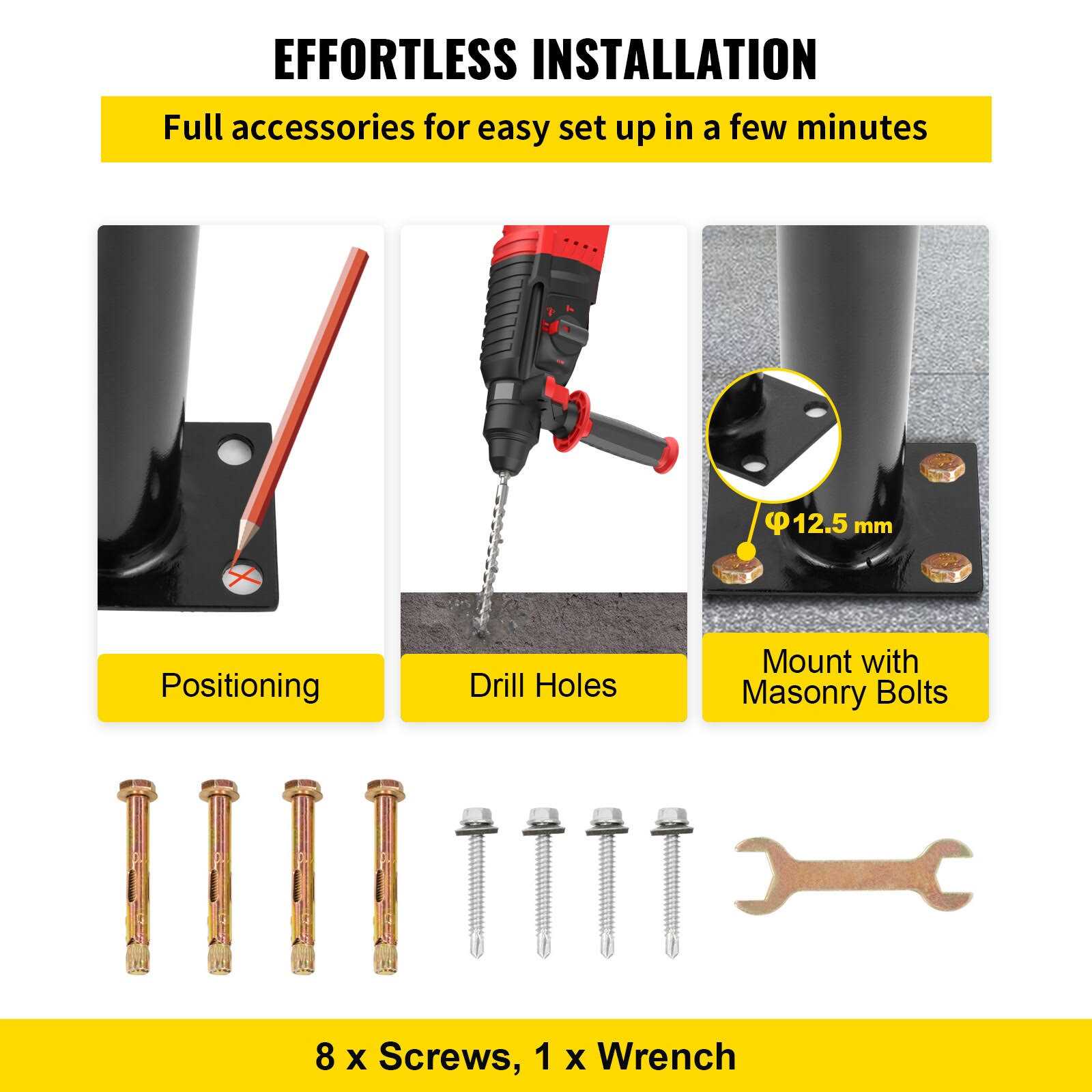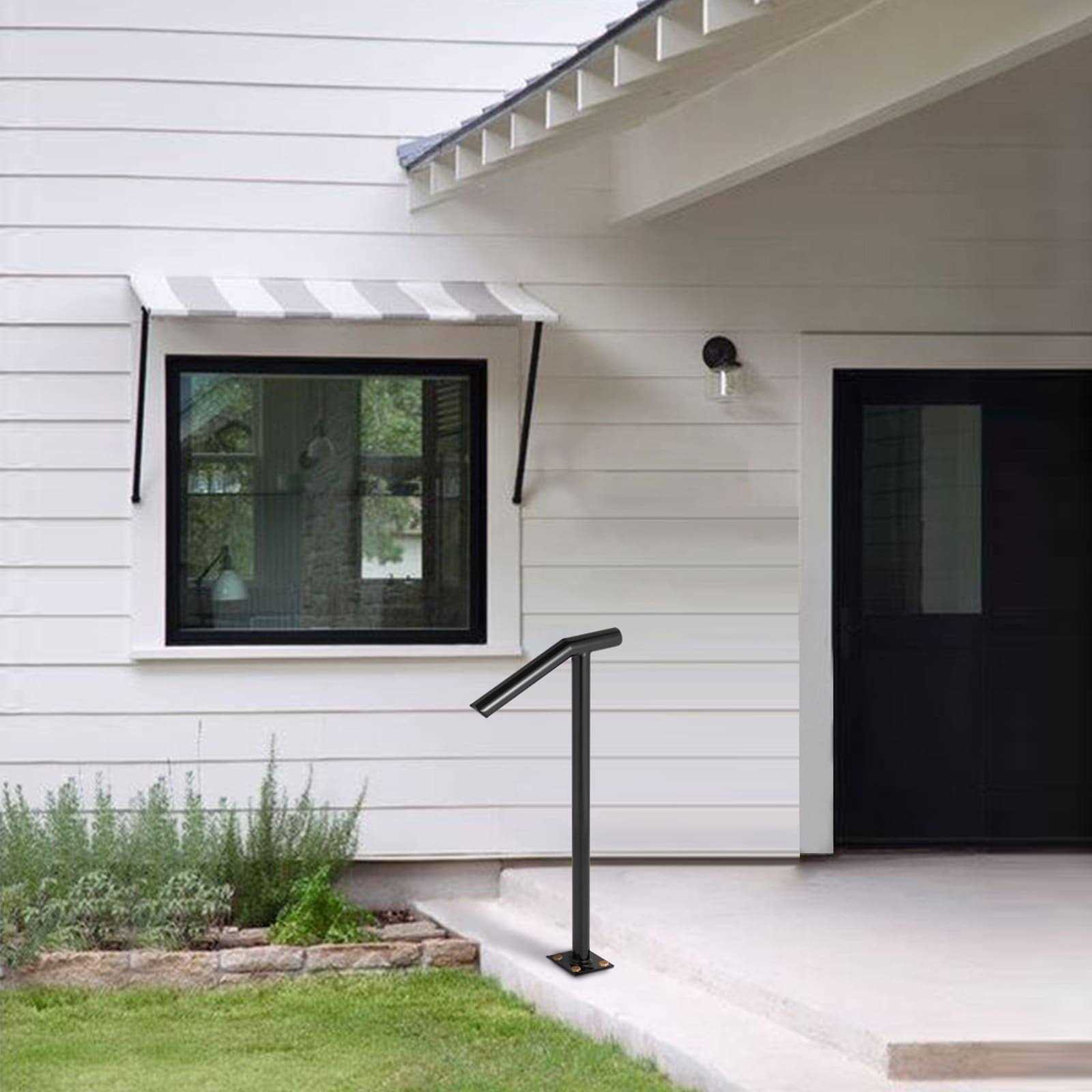 1-2 Steps Single Post Handrail Rugged Construction & High Stability & Powder-Coated Surface Our iron handrail provides extra protection for the elderly, children, and disabled struggling to use stairs. You don’t need to worry about its fastness and security, for the iron railing can hold up to 441 lbs/200 kg load. In addition, the exterior step rail is rust-proof and easy to clean due to its sturdy iron construction and powder-coated surface. This step handrail is ideal for gardens, residential buildings, porches, hotels, etc. Great for 1 to 2 Steps High Bearing Capacity Sturdy Iron Material Effortless Installation Key Features Great for 1 to 2 Steps: Handrail Width: 17.7″/45 cm; Handrail Height: 37.8″/96 cm. Our stair railing fits your 1 or 2 steps according to the different sizes, providing support when walking up and down stairs. It is perfect for helping people keep balance in the rain or winter and prevent skidding. High Bearing Capacity: With the 0.2″/5 mm thick base and 0.08″/2 mm thick tube, this outdoor steps handrail can hold up to 441 lbs/200 kg weight. As a reliable grab bar for your family, it provides extra security for the elderly, children, pregnant women, disabled family members, and people after surgery. Sturdy Iron Material: This handrail for stairs is made from durable iron, precluding worry about corrosion or scratch. It features a smooth powder-coated surface, allowing you to clean it with water or cloth easily and quickly. The railing is designed to last for years, even exposed to the sun or rain. Effortless Installation: Accompanying the step railing are complete accessories for easy installation, including expansion screws, self-tapping screws, spanner, etc. Just choose your desired location, mark it, drill holes on the mounting surface, and set up screws with four φ0.5″/12.5 mm pre-drilled holes. Indoor & Outdoor Use: The outdoor step railing is a must-have for your family with reliable performance. It can be installed on concrete, brick, and wood steps of porches, balconies, gardens, residential buildings, hotels, garages, etc. This stair rail is ideal for places you cannot attach to a wall or structure. Fit 1 to 2 Steps As a great helper for your family members to go up and down the stairs, this stair railing fits 1 to 2 steps. Besides, the outdoor steps handrail provides high stability and reduces fatigue for you. 441 lbs Load Capacity Our handrail for stairs can bear up to 441 lbs/200 kg load. The tube is 0.08″/2 mm thick, uneasy to deform or flex. Also, the 0.2″/5 mm thickened base ensures super stability and firm support. Tough Iron Construction This step railing is constructed with sturdy iron material, making it rust-proof and corrosion-proof. As a result, the outdoor step railing can withstand years of exposure to all kinds of weather. Easy to Assemble The stair rail kit includes screws and a wrench you need to attach the rail and post to the stairs. Pre-drilled holes on the base also eliminate your trouble of drilling. Thus, it only takes a few minutes to install. Elegant & Fashion Style The single post handrail is designed with a powder coating surface, easy to maintain and clean. Moreover, its stylish and elegant appearance provides perfect decoration for your stairs. Versatile Uses Our handrail for steps is suitable for residential buildings, outdoor gardens, hotels, porches, and other places with stairs or steps. It serves as a support to improve security, comfort, and convenience. Specification Model: DLZ-2STEP Steps: 1 to 2 Material: Iron Load Capacity: 441 lbs/200 kg Product Size (W x H): 17.7″ x 37.8″/45 x 96 cm Base Size (L x W): 3.9″ x 3.9″/10 x 10 cm Tube Diameter: 2″/50 mm Tube Thickness: 0.08″/2 mm Base Thickness: 0.2″/5 mm Pre-Drilled Hole Diameter: 0.5″/12.5 mm Product Weight: 4.9 lbs/2.2 kg Color: Black Package Content 1 x Stair Handrail 4 x M8*50 Expansion Bolts 4 x M6*50 Self-Tapping Screws 1 x Open-Ended Spanner