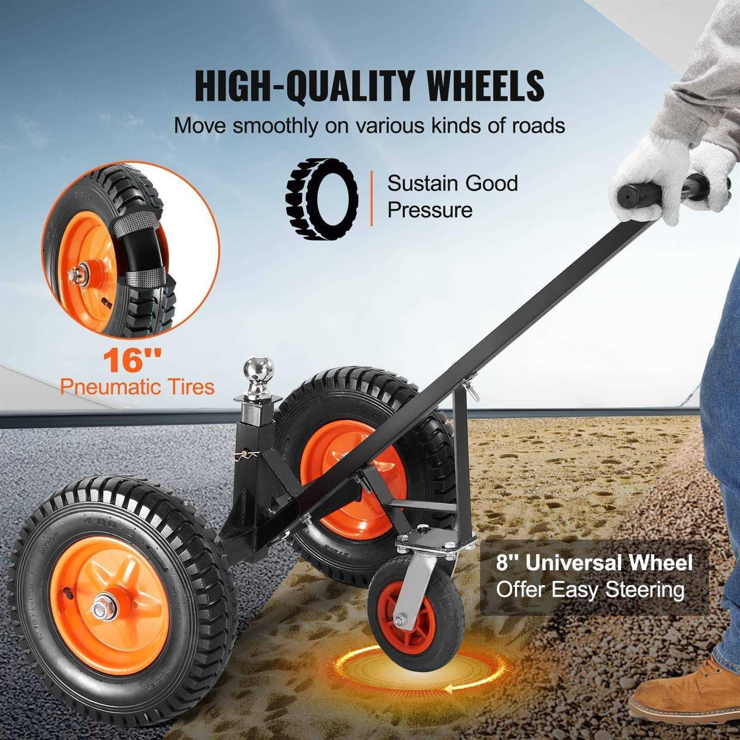 Trailer Dollies by VEVOR. Details:Trailer Mover Dolly. key Features. 1000 Pound Capacity. 1000 lbs large capacity allows you to use this trailer dolly easily to move and maneuver a wide variety of trailers. Front & Rear Wheels. Adjustable Height. The height can be adjusted from 15.7″ to 23.6″ to fit various sized trailers. The hitch ball size is 2″ to work with a 2″ coupler or larger. Solid Structure.