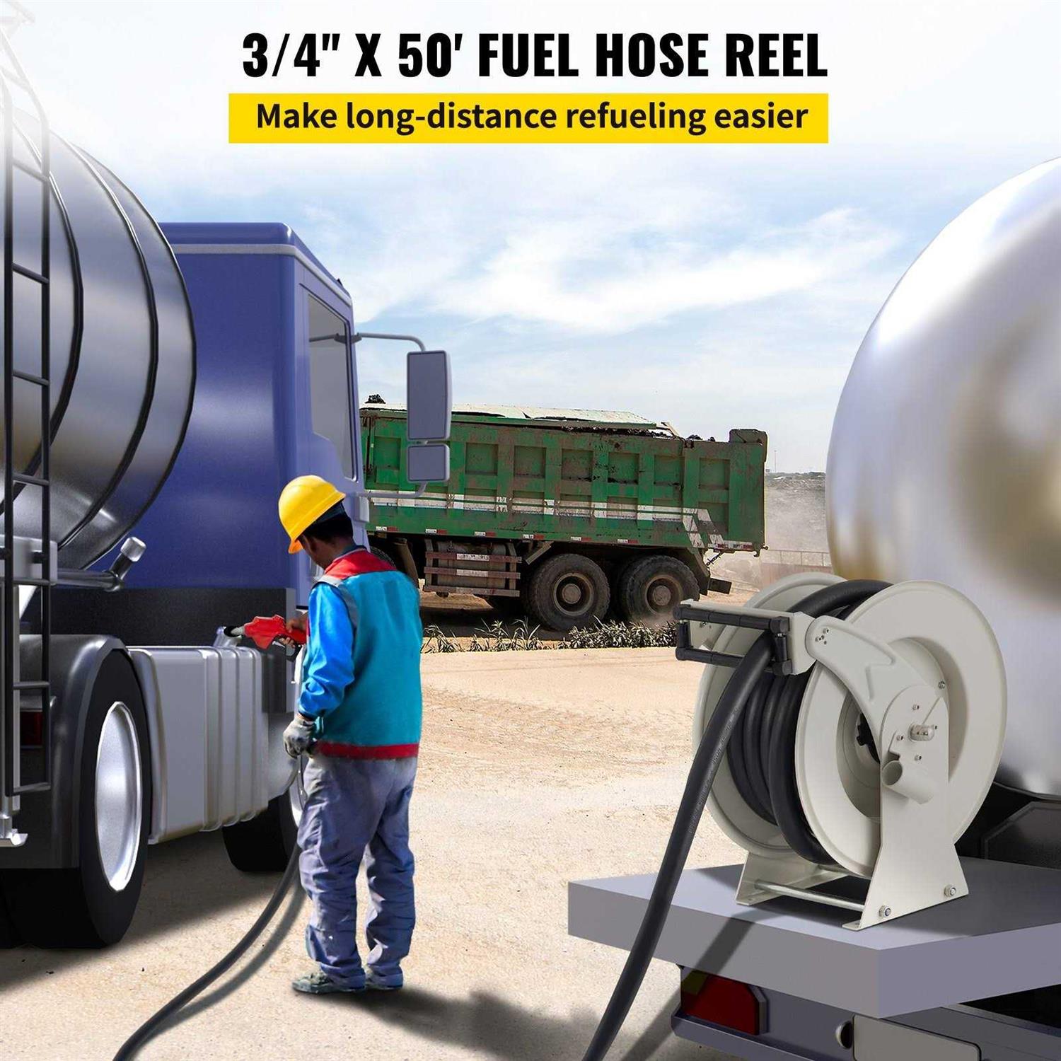 VEVOR Fuel Hose Reel 34 x 50 Retractable Diesel Hose Reel with Auto Refueling Gun CYR50FT34INCHD7NEV0