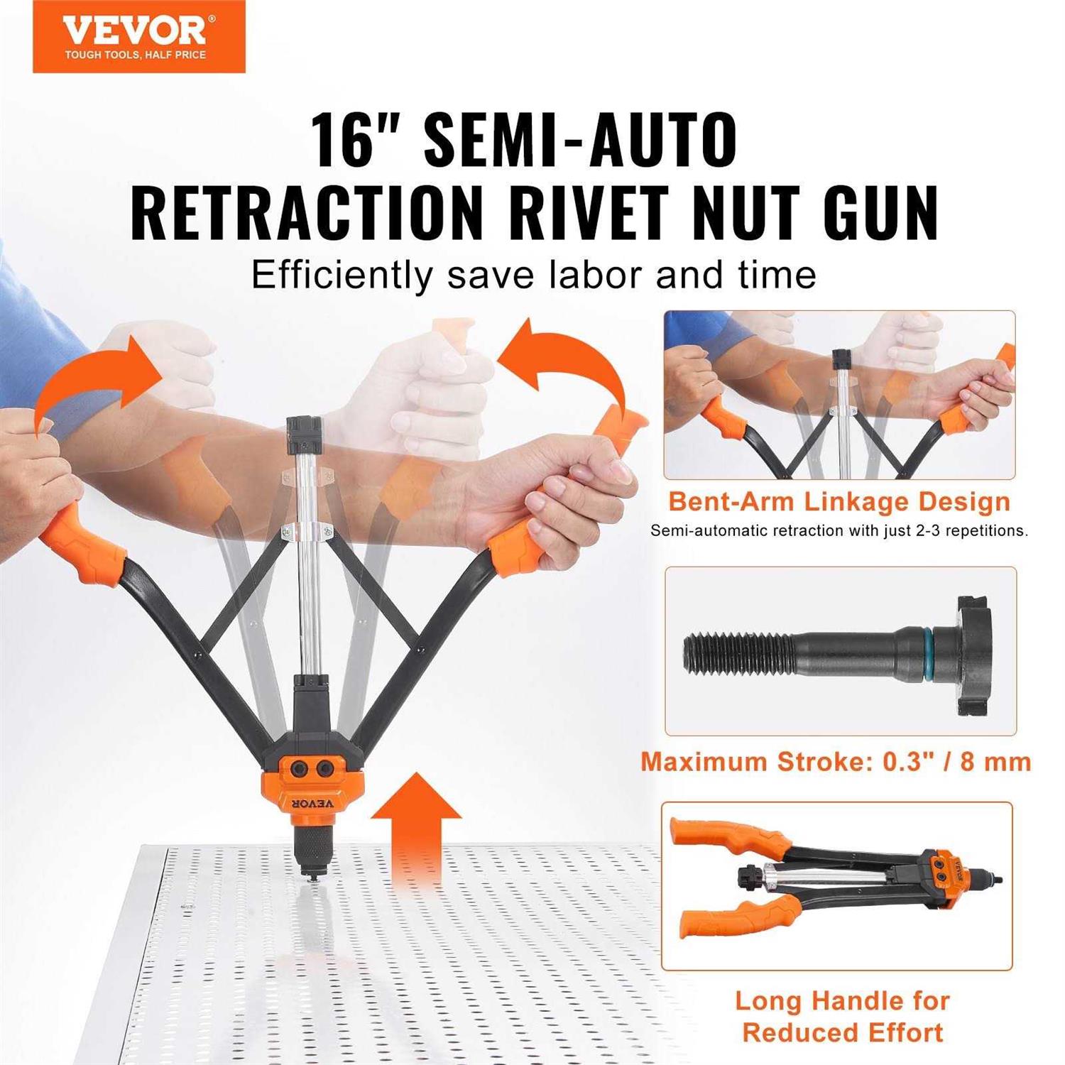 VEVOR Rivet Nut Tool 16” Rivnut Tool Kit with 13pcs Metric and SAE Mandrels 186pcs Rivet Nuts M3 M4 M5 M6 M8 M10 M12 1/4-20 5/16-18 3/8-16 1/2-13