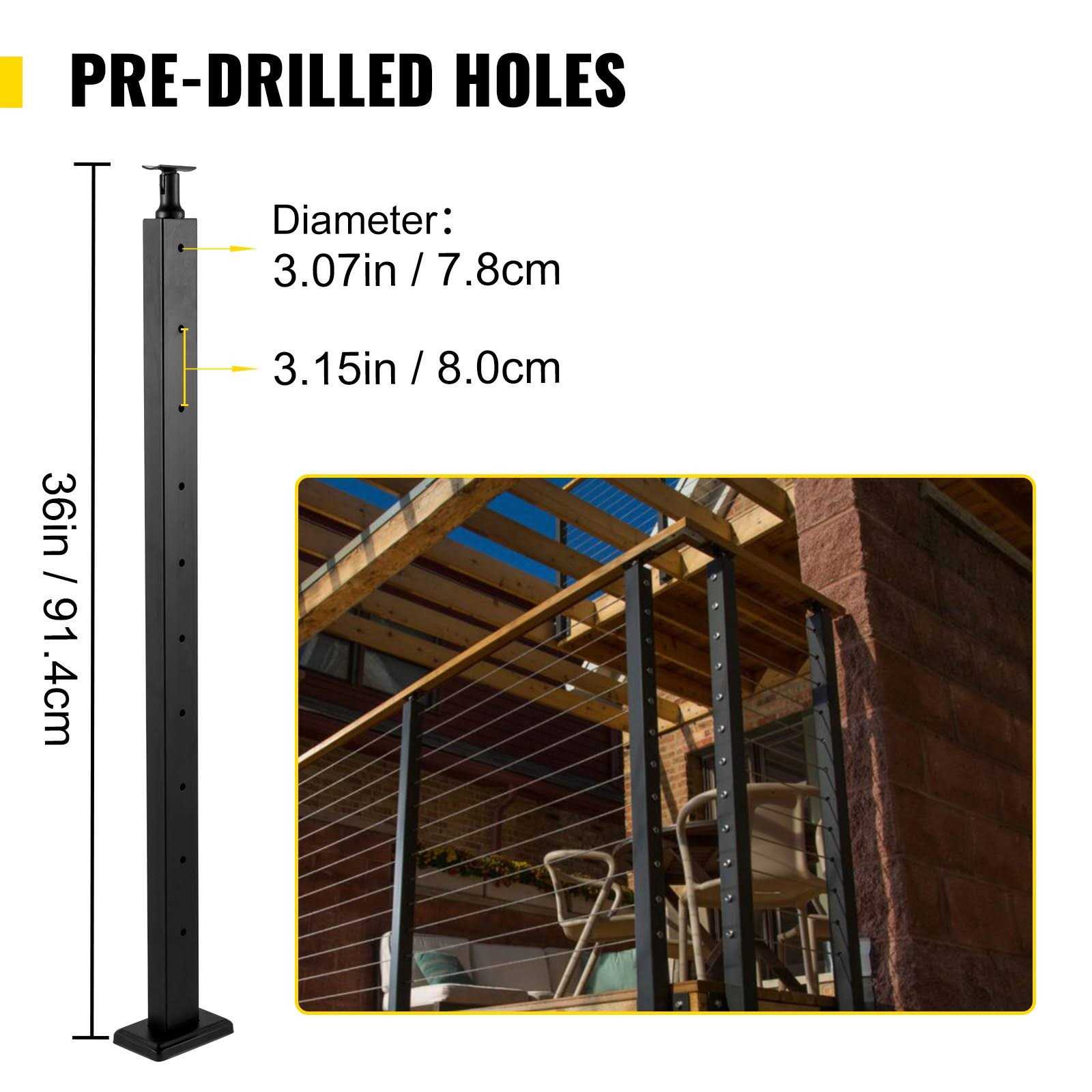 The VEVOR 36 in. cable handrail post in height is made of durable stainless steel and coated with powder. 0° to 300° adjustable cast bracket is designed to fit both your interior and exterior cable railing systems. Pre-drilled holes with a standard 3 in. distance enable the stair railing kit to work for almost all state codes.