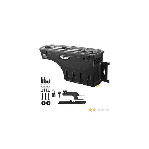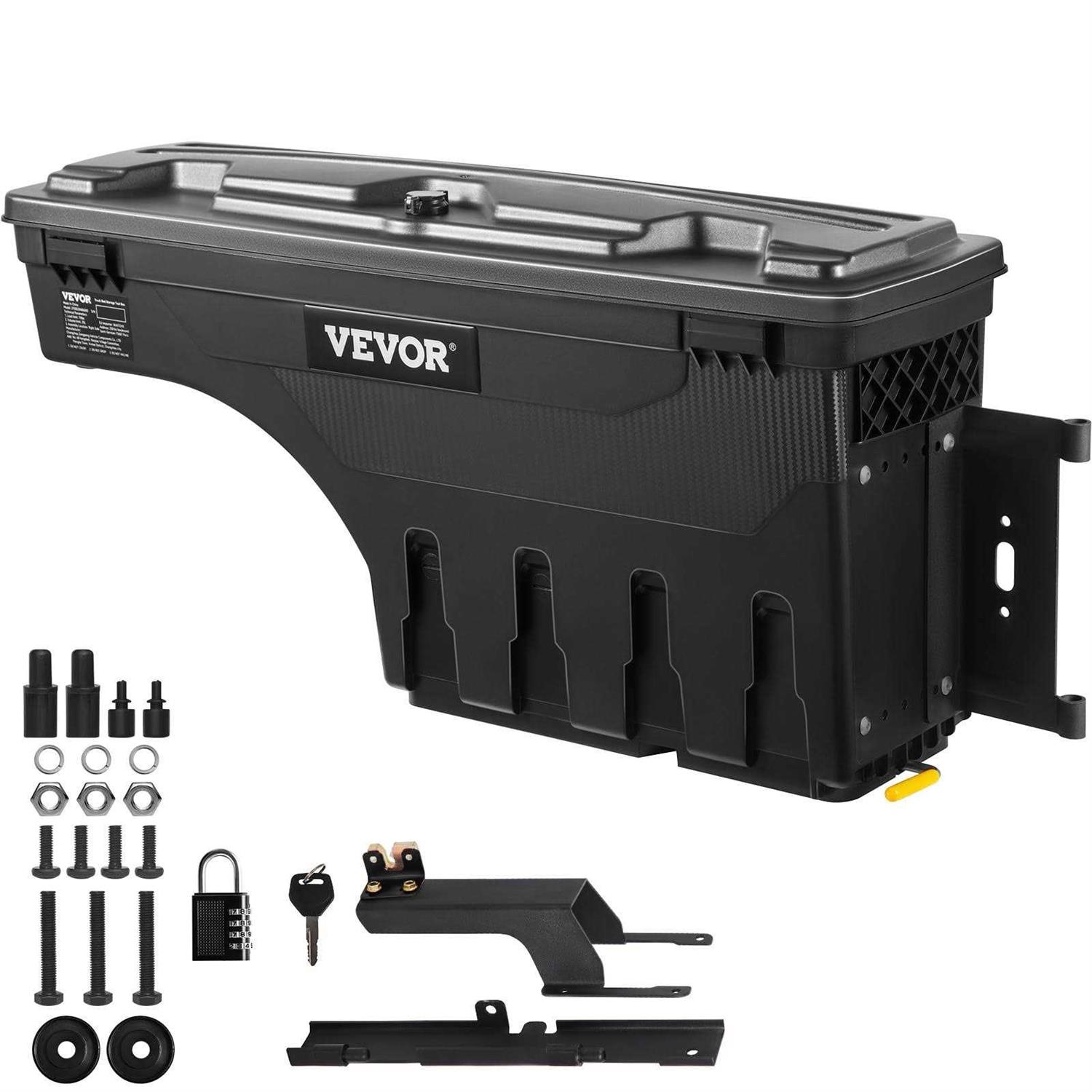 VEVOR Truck Bed Storage Box, Complete Bolt Accessory Kit, Lockable Swing Case with Password Padlock, 6.6 Gal/25 L ABS Wheel Well Tool Box,