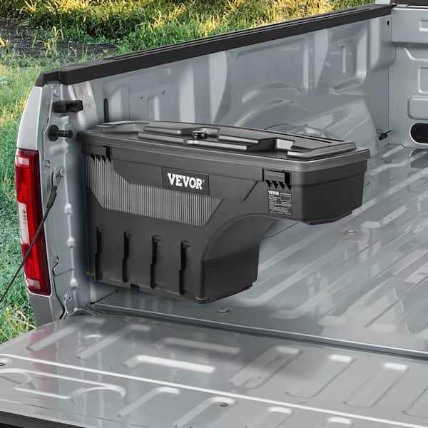 Stand out with the VEVOR truck bed toolbox. More Storage Space, No Mess Anymore! Forever Losing Things? It’s time to create a designated place for your tools. VEVOR is ready to keep your belongings well-organized during any journey. The innovative swiveling design over the wheel well allows full use of the truck bed. Ultra-spacious space and wall-mounted installation will bring you a sense of ease. Let VEVOR hold your items in summer or winter, come rain or shine!.