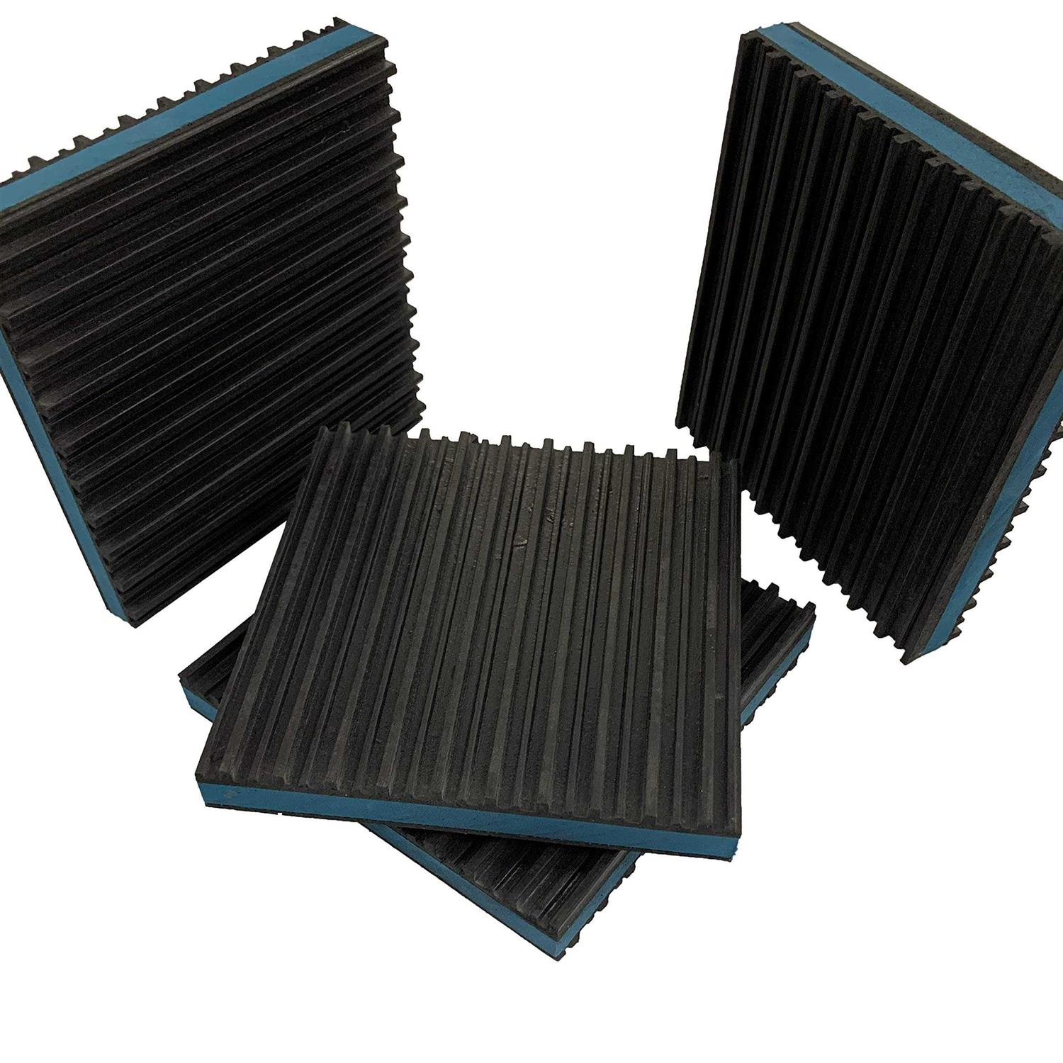 Heavy Duty Anti Vibration Isolation Pads 4″ x 4″ x 7/8″ Ribbed Rubber with Blue Composite Foam Center, Quantity 4