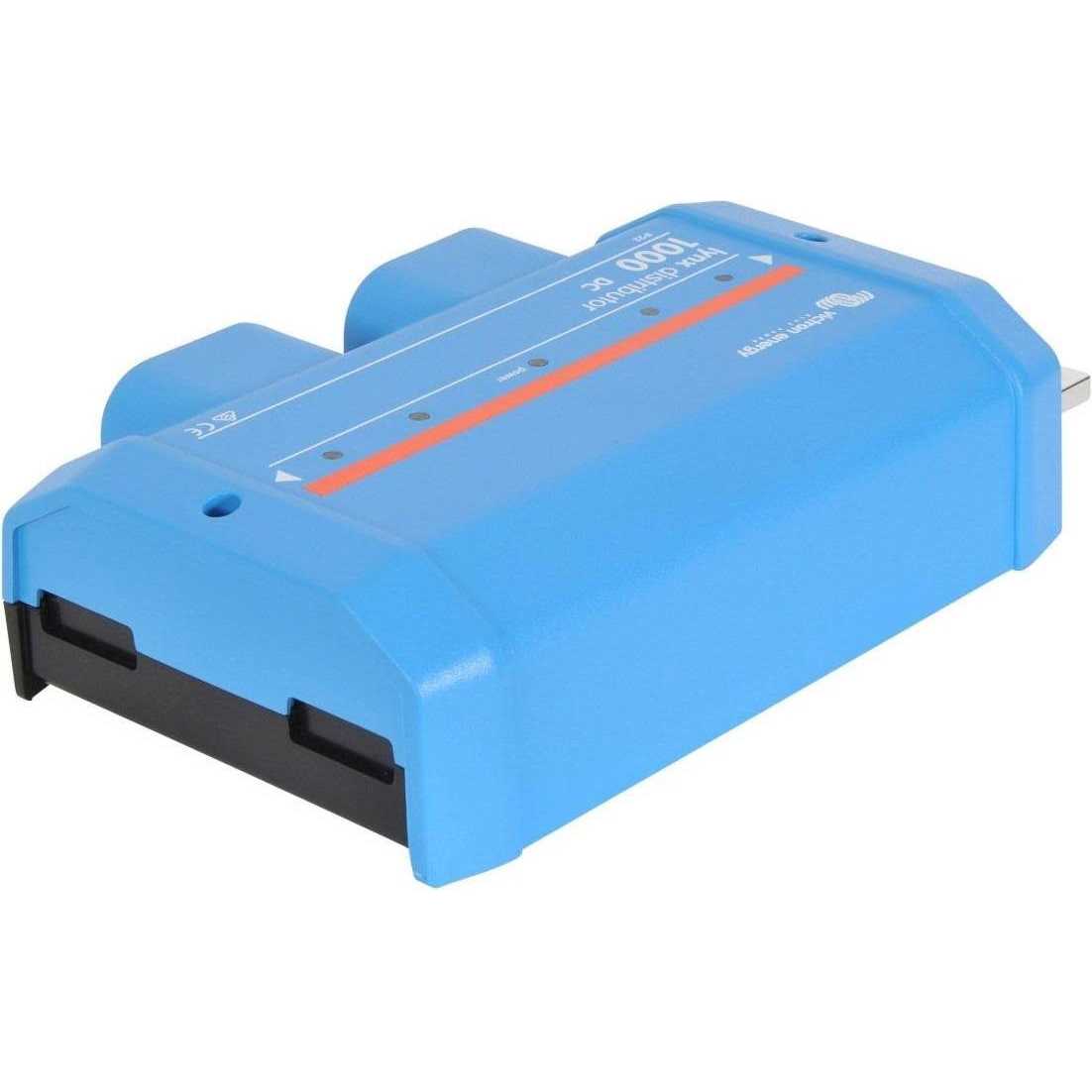 Contains a positive and negative bus-bar and provides a connection for 4 individual DC equipment circuits loads or DC groups. It has a space for individual DC fuses per DC group. There is an optional feature of an LED for each fuse to indicate if fuse is blown. If you wish to use the fuse indication LEDs on the Lynx Distributor it also requires a connection to a Lynx Shunt. The Lynx Shunt contains the necessary wide input 8 to 70VDC power supply to output the required 5V 45V-55V power requirement of the Lynx Distributor circuit board. RJ10 fly leads are used to connect the Lynx Shunt to the Distributor. This RJ10 cable is supplied with the Distributor in the box. There are two ports on the Lynx Shunt and it is possible to use either. When all is OK only the central LED is green; when a fuse has blown or is missing the central and blow fuse circuit LEDs turn red. If you are not using all connection points in your DC distribution it may be necessary to fit dummy fuses to extinguish the red LEDs.