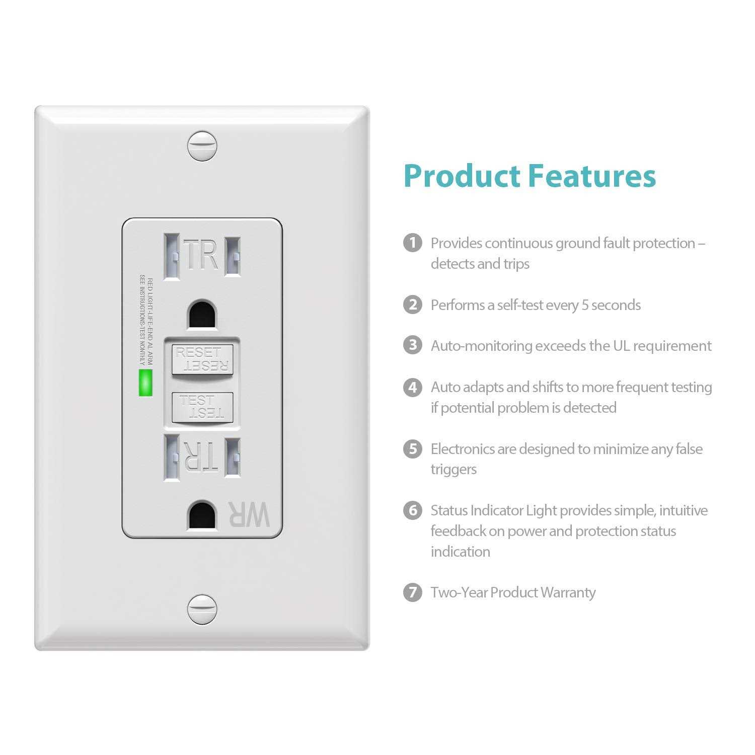 [10 Pack] WEBANG Self-Test GFCI Outlets, Tamper-Resistant and Weather-Resistant, GFCI Receptacle with LED Indicator, Decorative Wall Plates and Screws