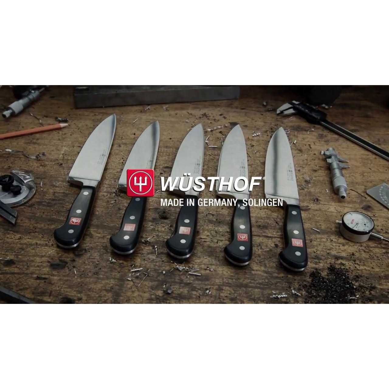 This sharpening device brings dull knives back to life in moments, helping you craft restaurant-worthy dishes with ease. This intuitive sharpener is so user-friendly – just hold the E-Z grip handle and angle your knife at 90 degrees on the safe razor slot for perfect results every time. With its innovative two-stage process, first use the carbide side to set your blade appropriately and then use the ceramic side to finish off with a polished edge. Plus, it takes only seconds – this new kitchen favorite ensures peak performance with each use and is designed to sharpen blades at 14 degrees per side. Make meal prep effortless again with Wusthof’s high-performing Two-Stage Hand-Held Knife Sharpener! Features: Place the sharpener on a flat work surface and hold the E-Z grip handle with one hand and the knife handle with the other. Insert the knife blade fully into the slot at a 90-degree angle to the sharpener and pull back a few times to sharpen. After setting the knife’s edge with the carbide side, use the unit’s ceramic side to nicely finish the edge. This sharpener is designed to sharpen a knife at 14 degrees per side. This sharpener can also be used for serrated and scalloped edges (ceramic fine stage only).