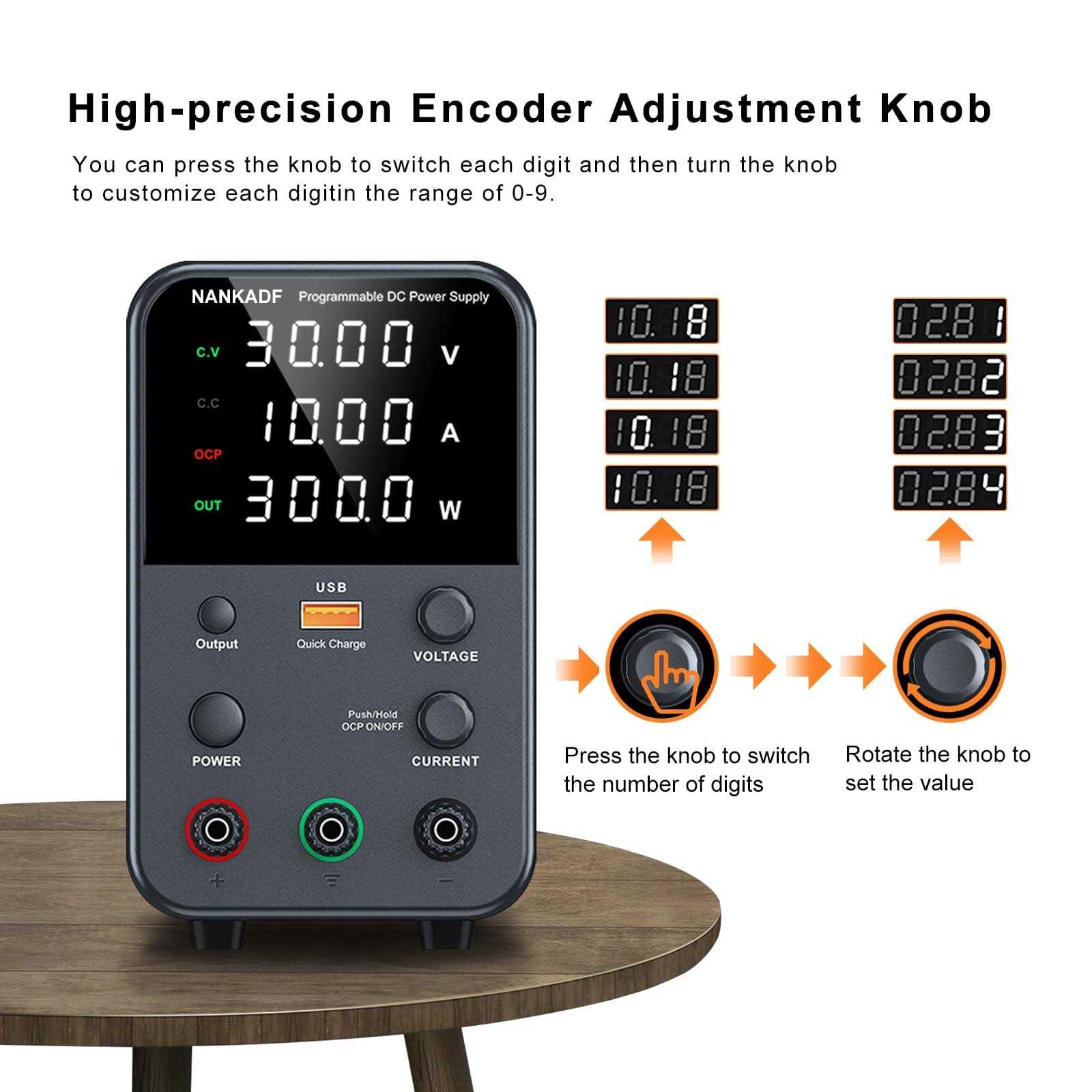 DC Power Supply Variable 0~30V 0~10A Adjustable Bench Power Supply with Encoder Knob