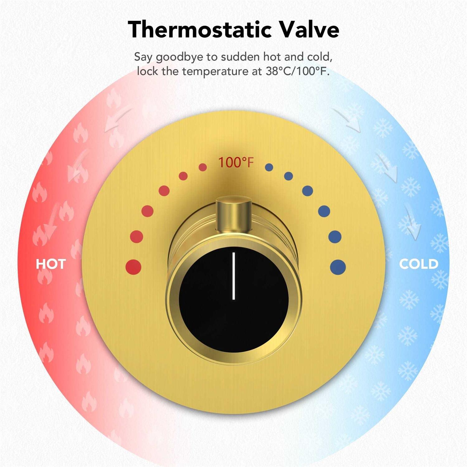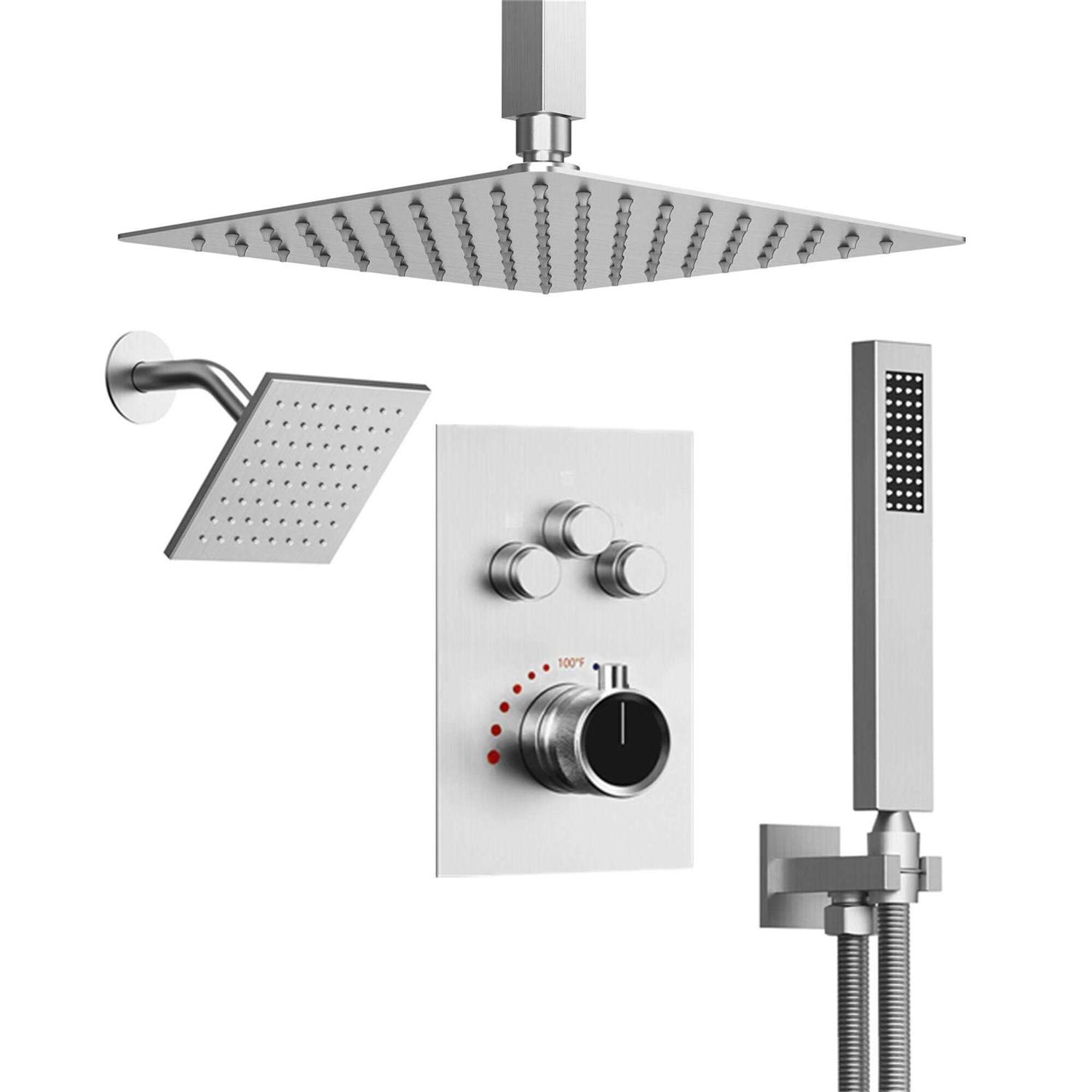 Everstein Dual Heads 12 inch Rainfall & High Pressure 6 inch Shower System w/ 3 Way Thermostatic Faucet
