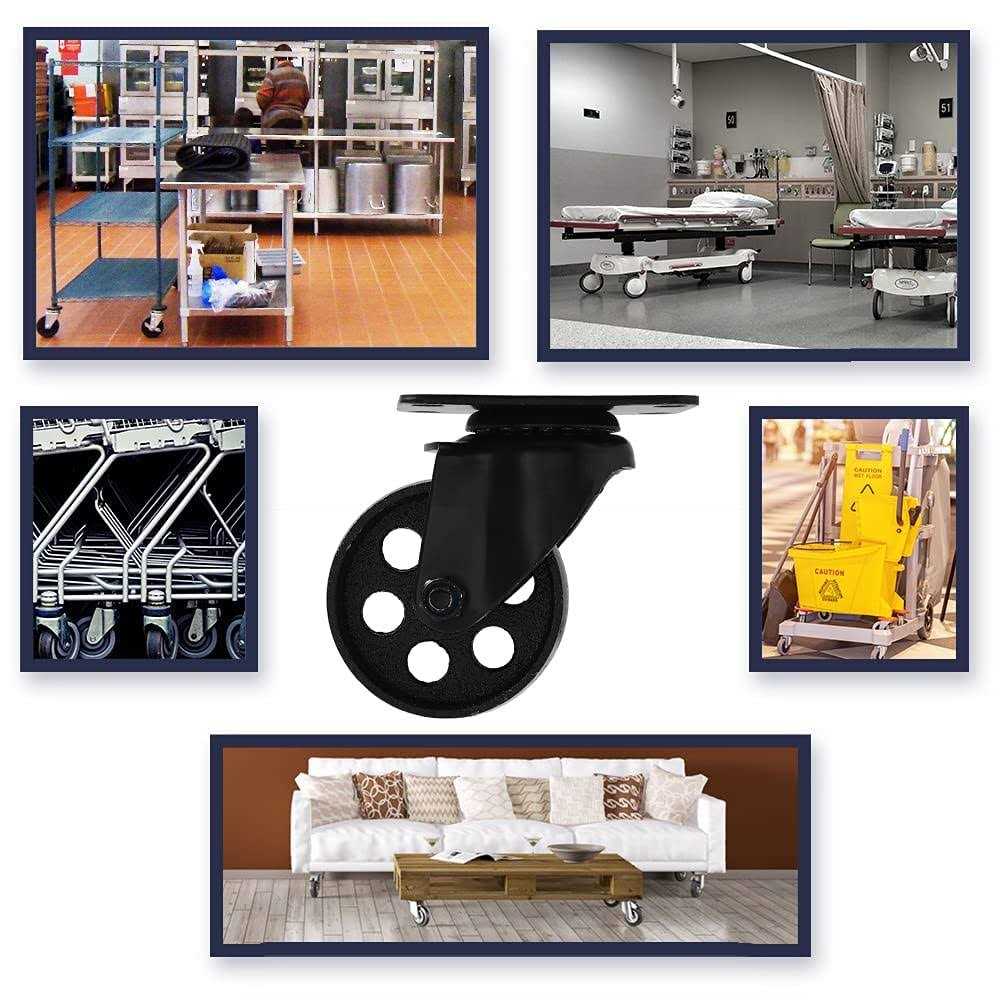 Factorduty 4 All Black Metal Swivel Plate Caster Wheels w/Brake Lock Heavy Duty High-Gauge Steel